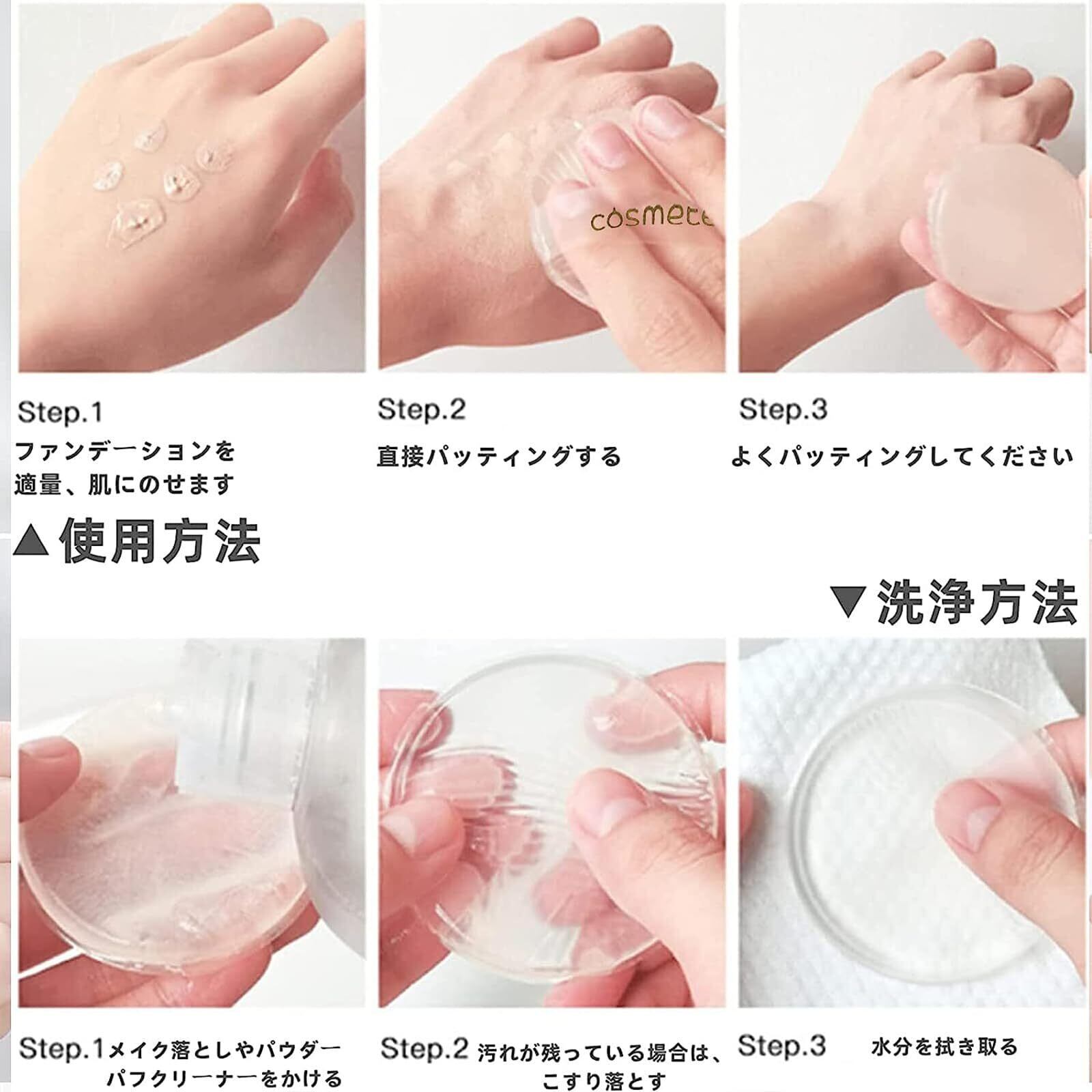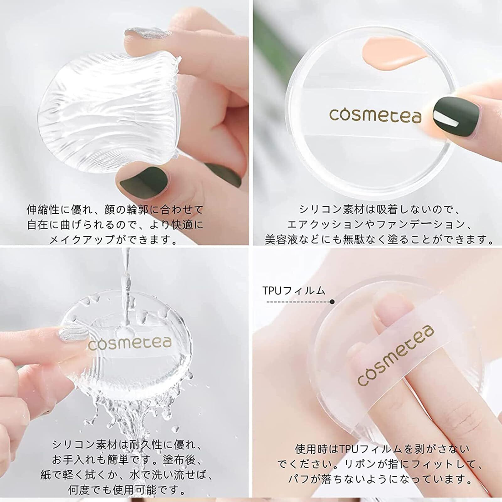 【高弾性の感触】弾力があるので、肌触りもよくリキッドファンデーションが綺麗に濡れて、耐久性にも問題ありません。パフは環境に優しいtpuで作られ、透明で弾性が高く、手触りが快適で、より耐摩耗性と耐久性があり。