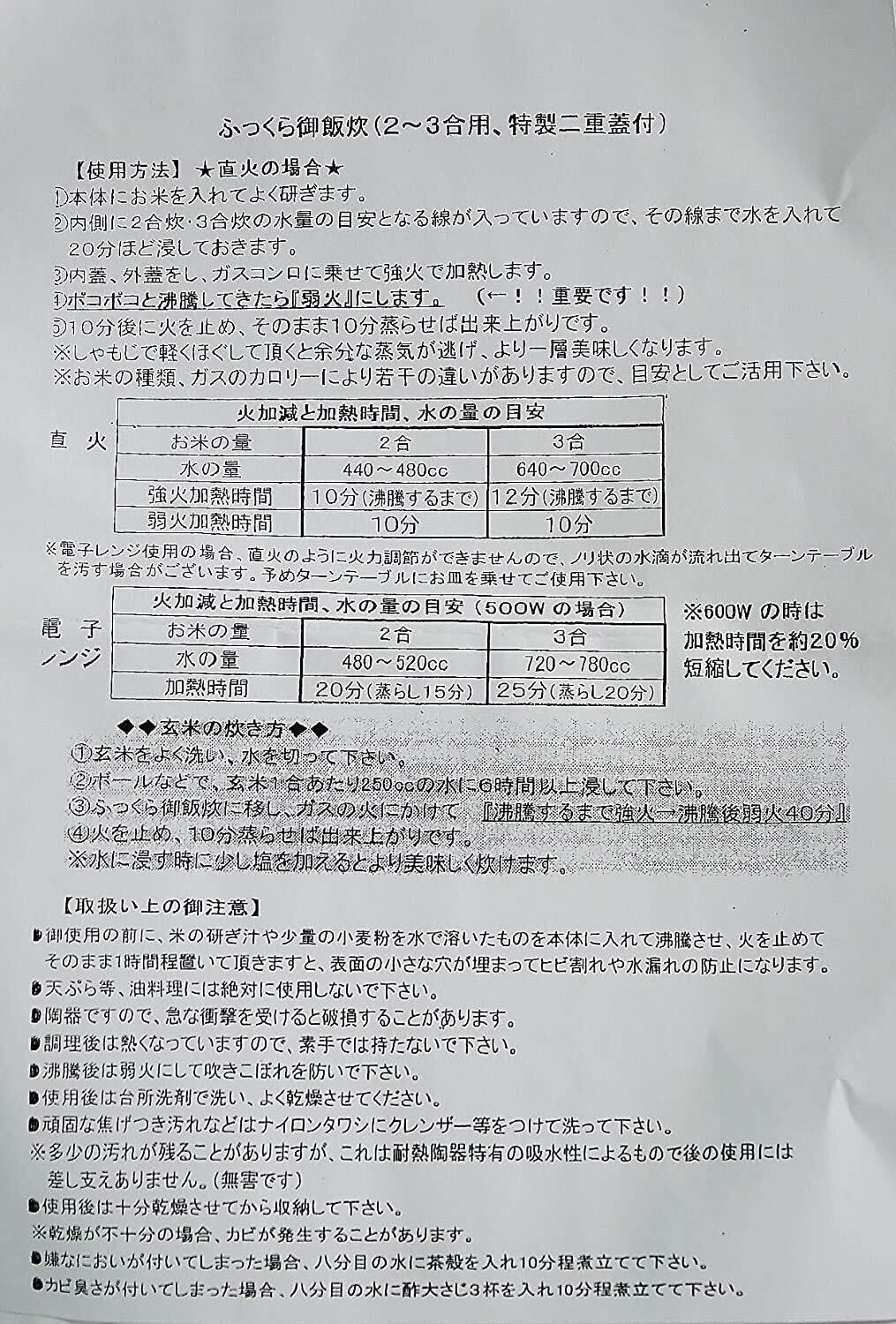 ふっくらご飯鍋 二重蓋 3合炊 萬古焼 ばんこ焼土鍋 陶器 日本製