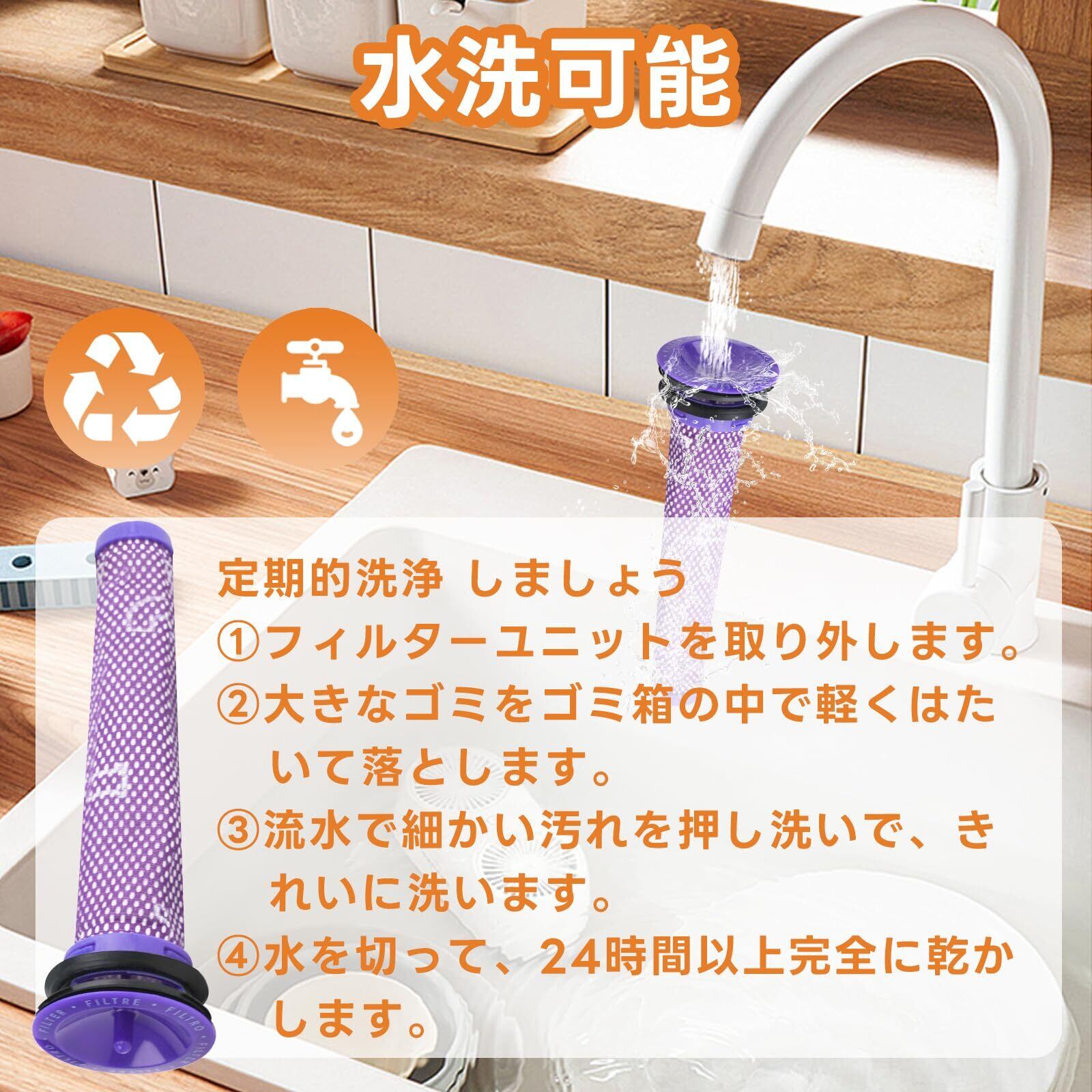 【便利性】一度洗うと乾燥には24時間がかかるので、フィルター 3個セットは替えが有ると便利です。予備品としても最適です。24時間以上しっかり乾かしから本体の戻してください。