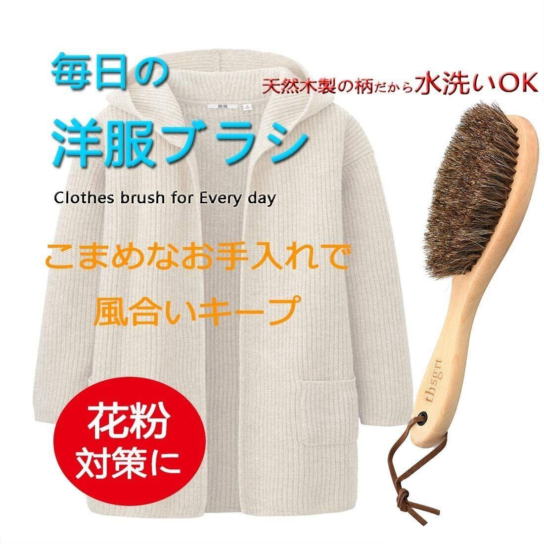 馬毛ブラシ,thsgrt【天然馬毛100%】 洋服 靴磨き 天然木 花粉対策 毛玉予防 スーツブラシ 静電/ホコリ/花粉 除去