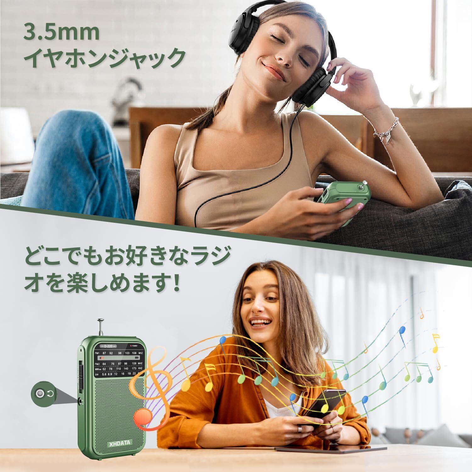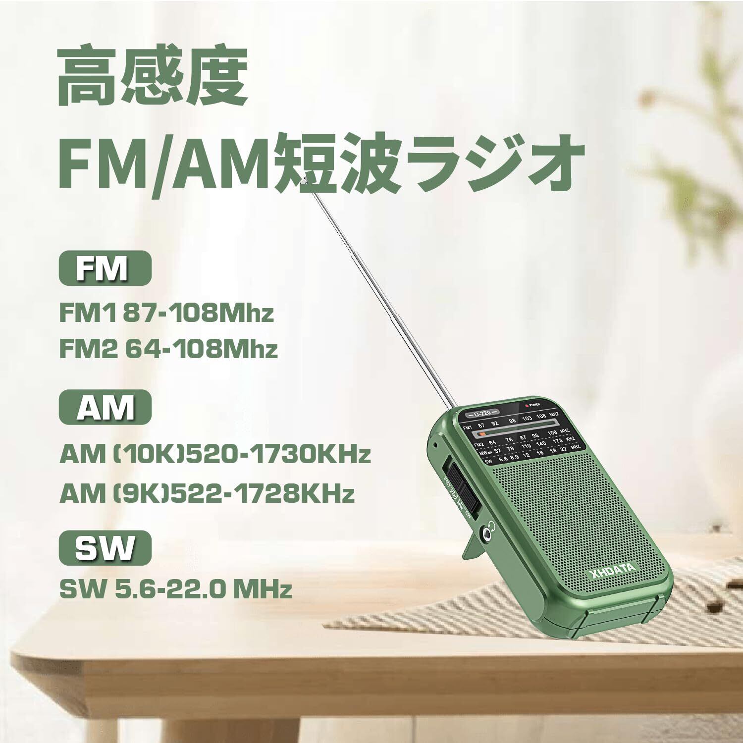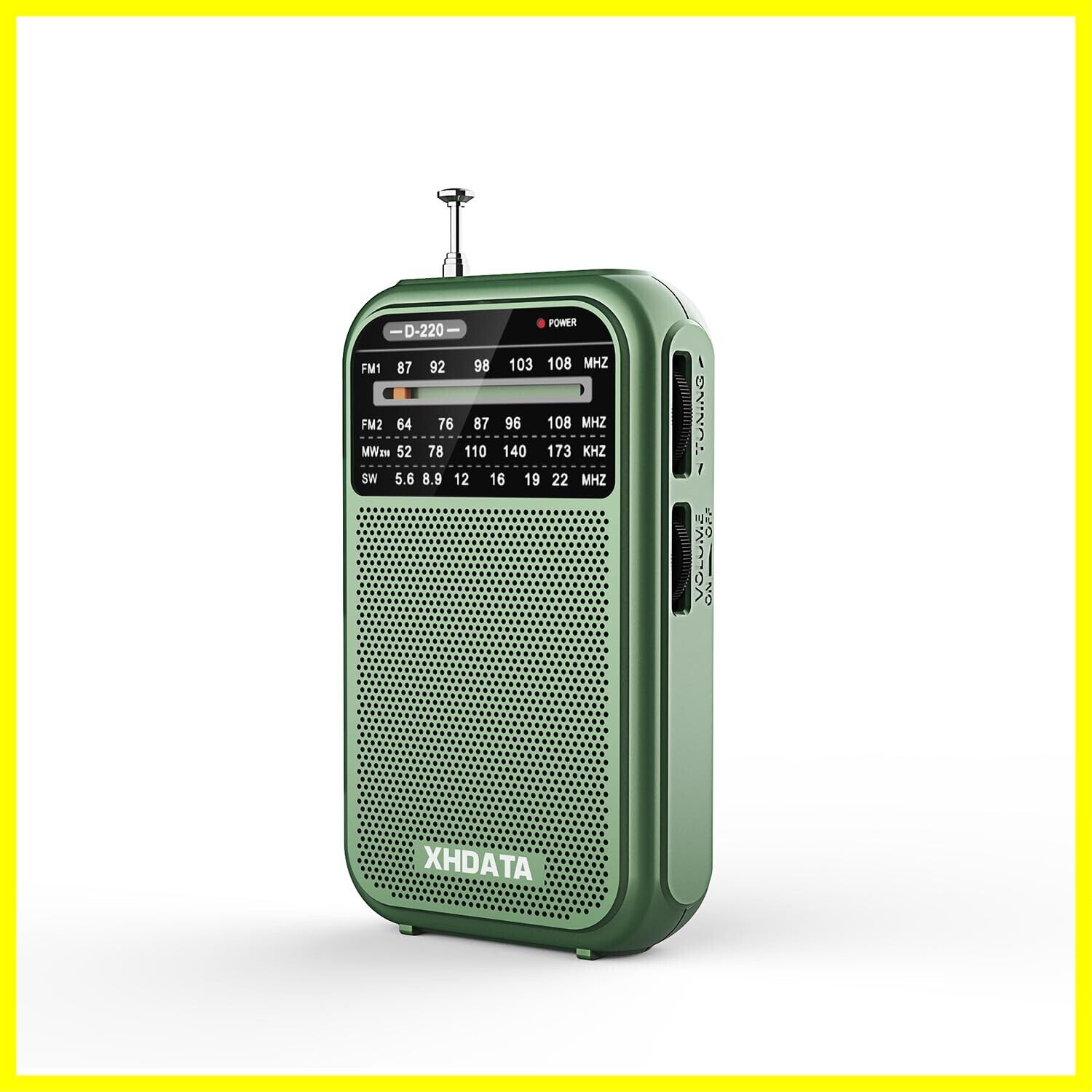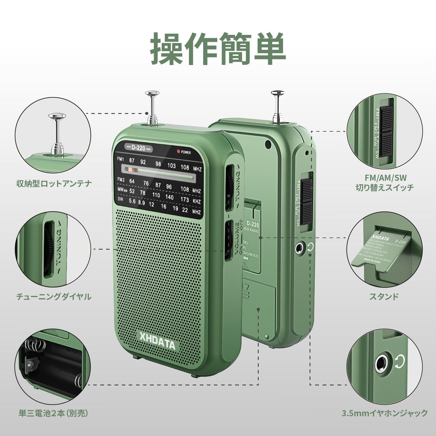 XHDATA D220 ラジオ 小型 AM/FM 短波ラジオ ワイドFM対応 携帯ラジオ ポケットラジオ ポータブルラジオ 高感度 大音量 単3形電池型 防災 操作簡単 日本語取扱説明書付き(緑)