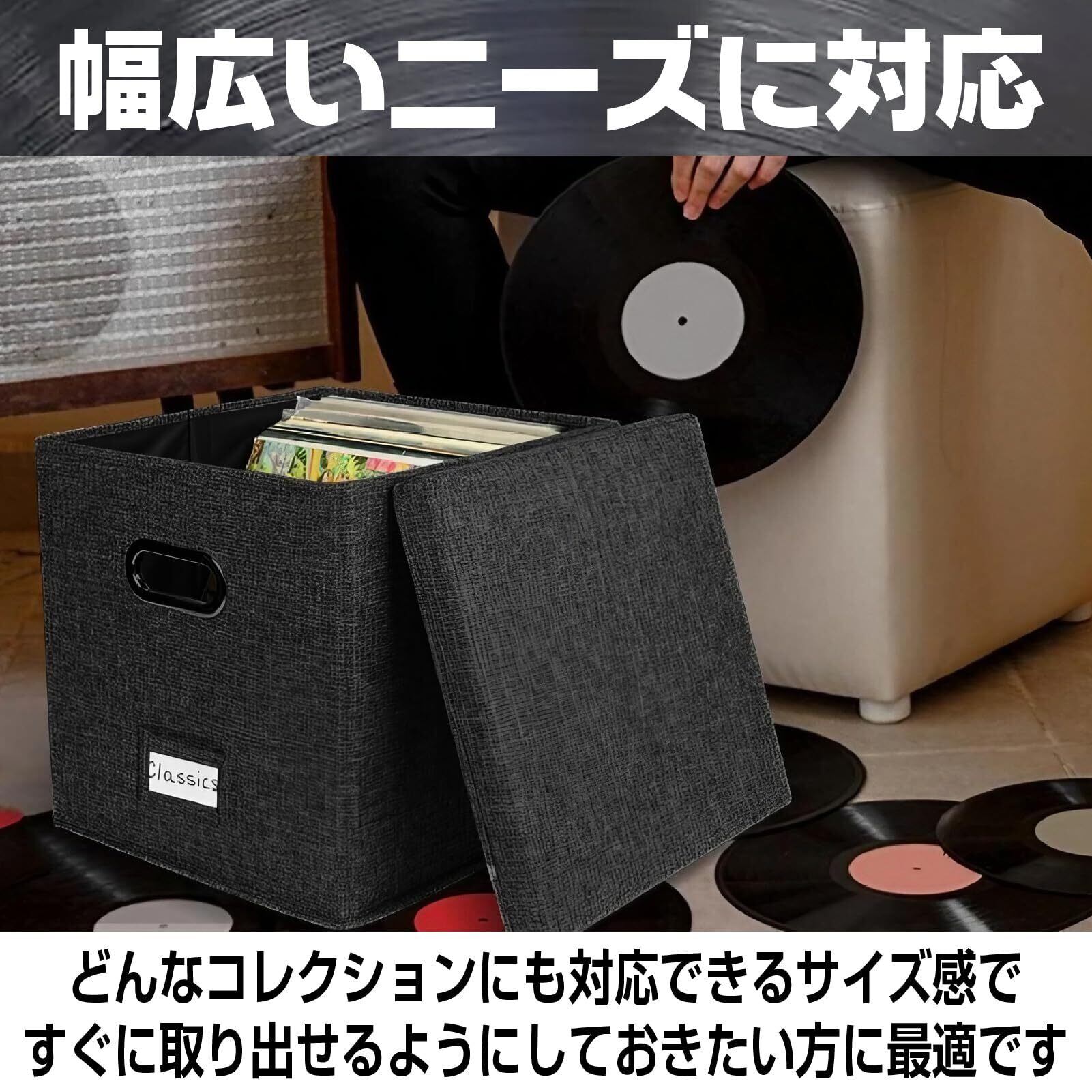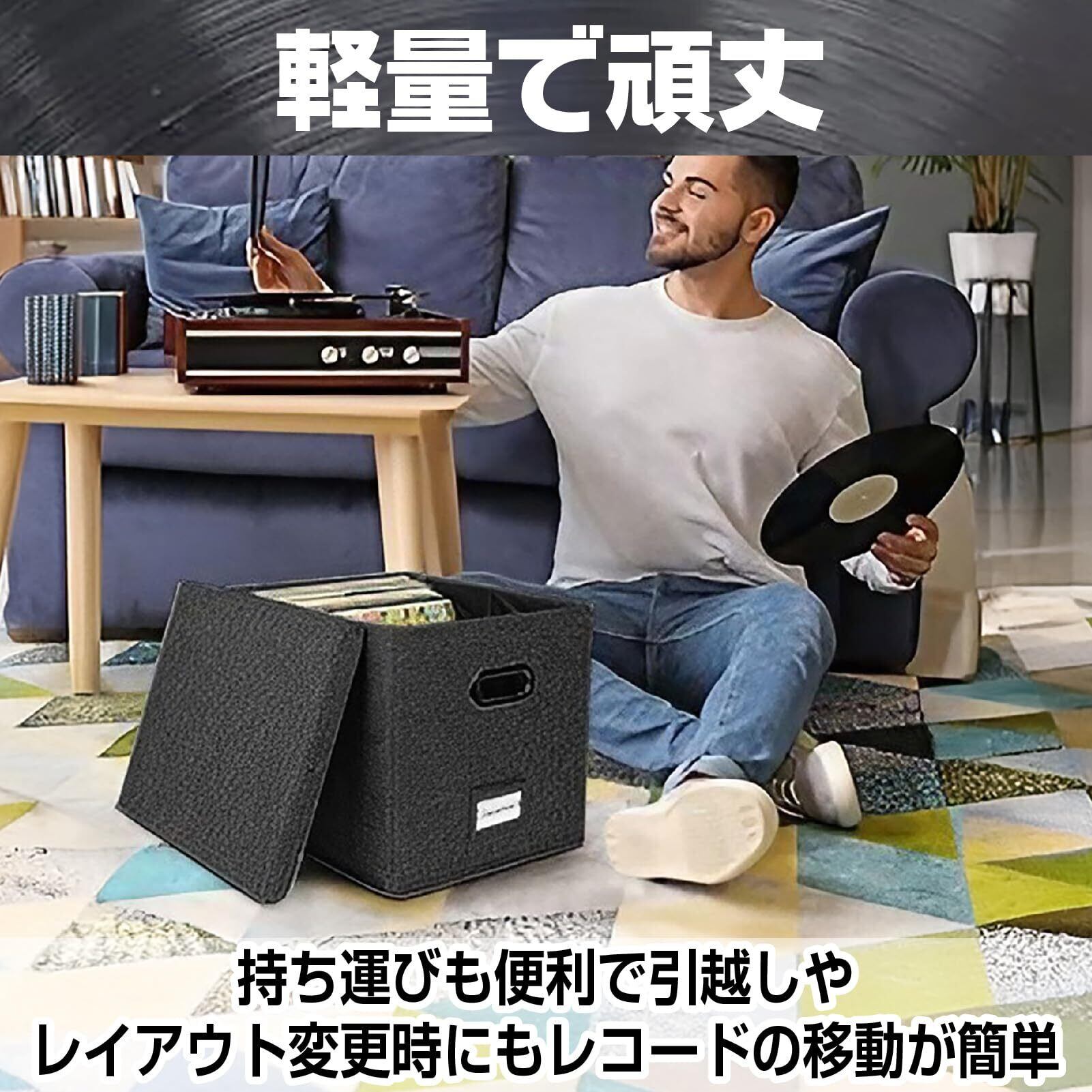 【 レコードボックス】この収納ボックスは非常に軽量でありながらも頑丈で、持ち運びにも便利です。引越しやレイアウト変更時にも、レコードの移動が簡単に行えます。どこに置いても違和感のないデザインなので、リビングや書斎、寝室にも適しています。