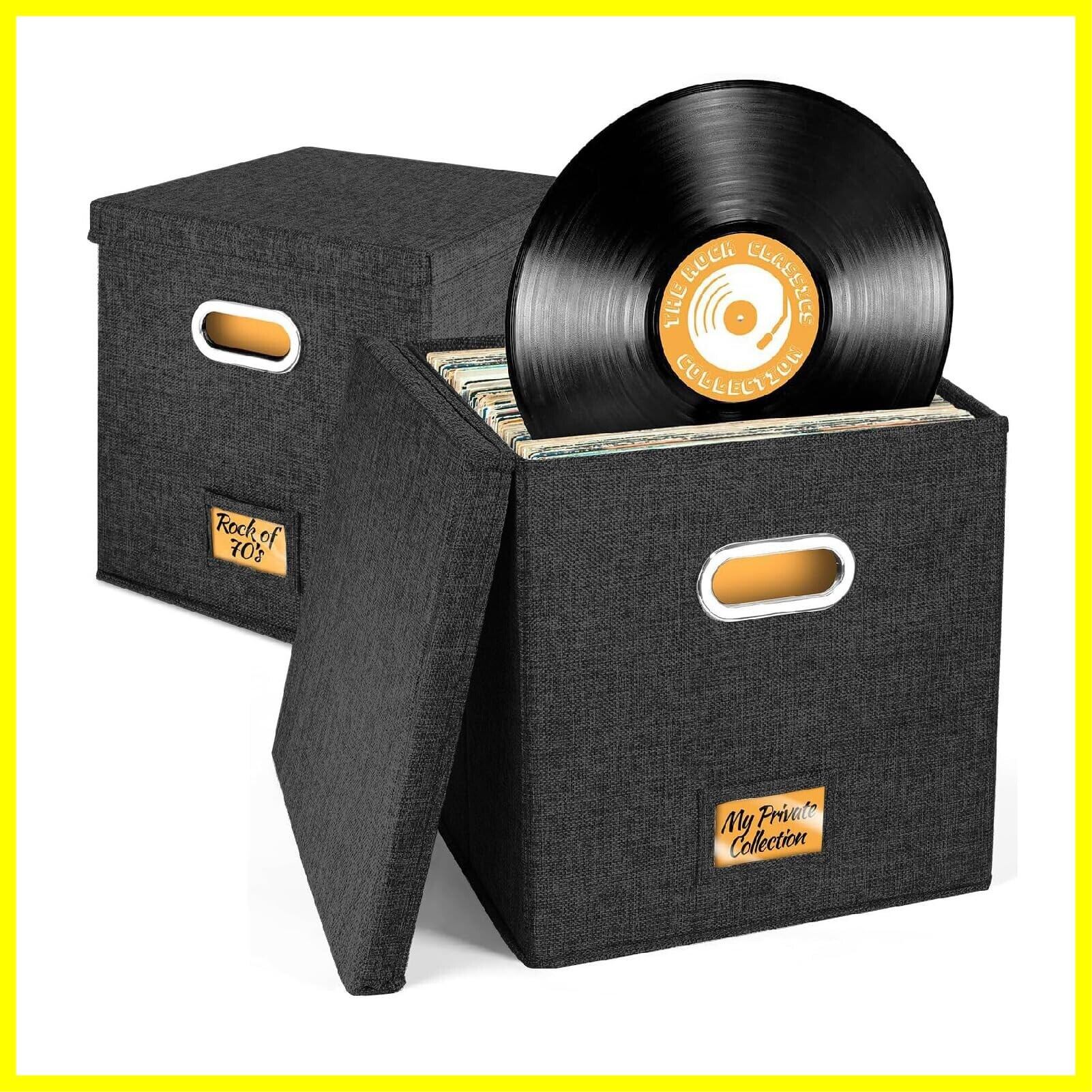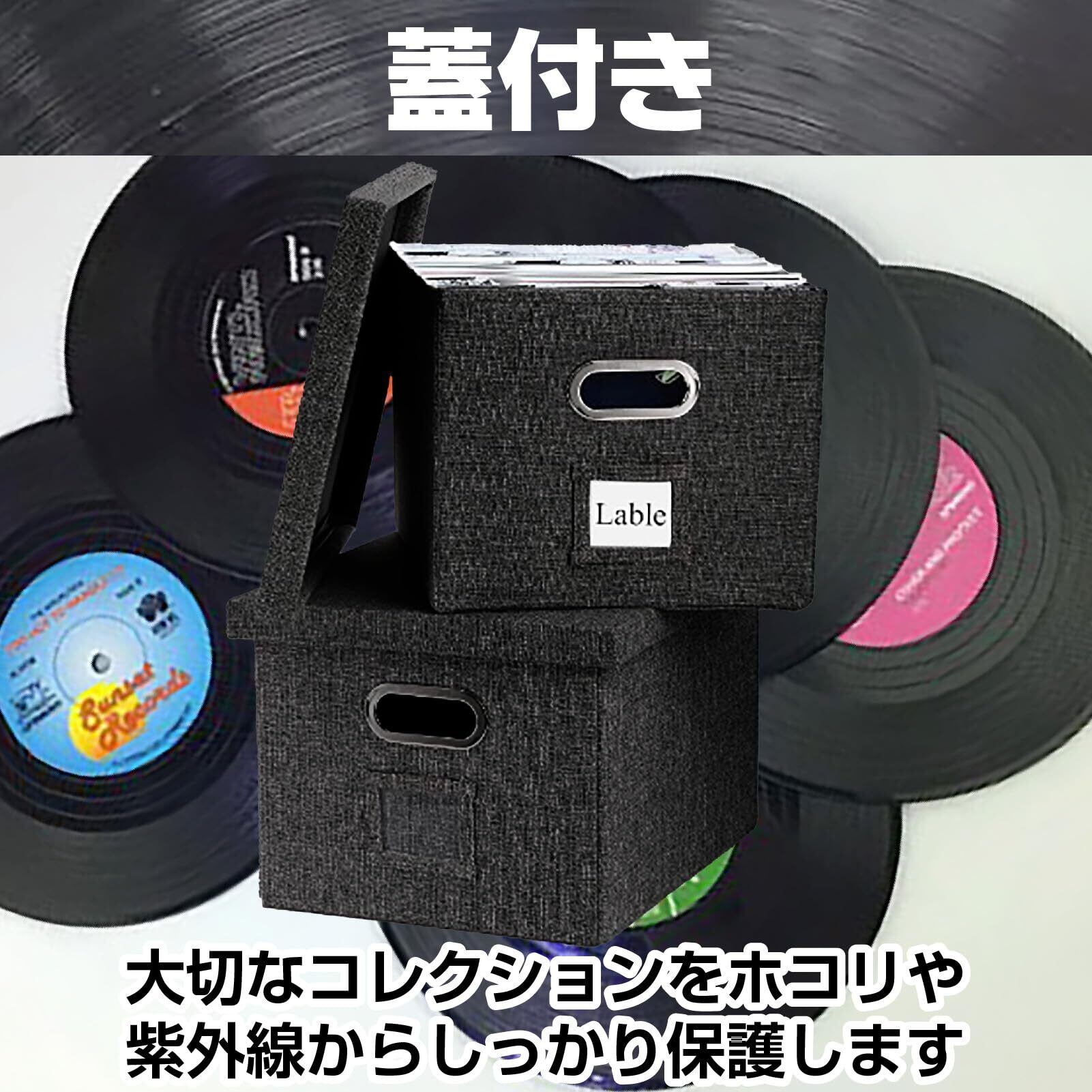 Boono レコード専用 レコードケース レコードボックス レコード 収納 ボックス 蓋付き 収納box (ブラック2個セット)