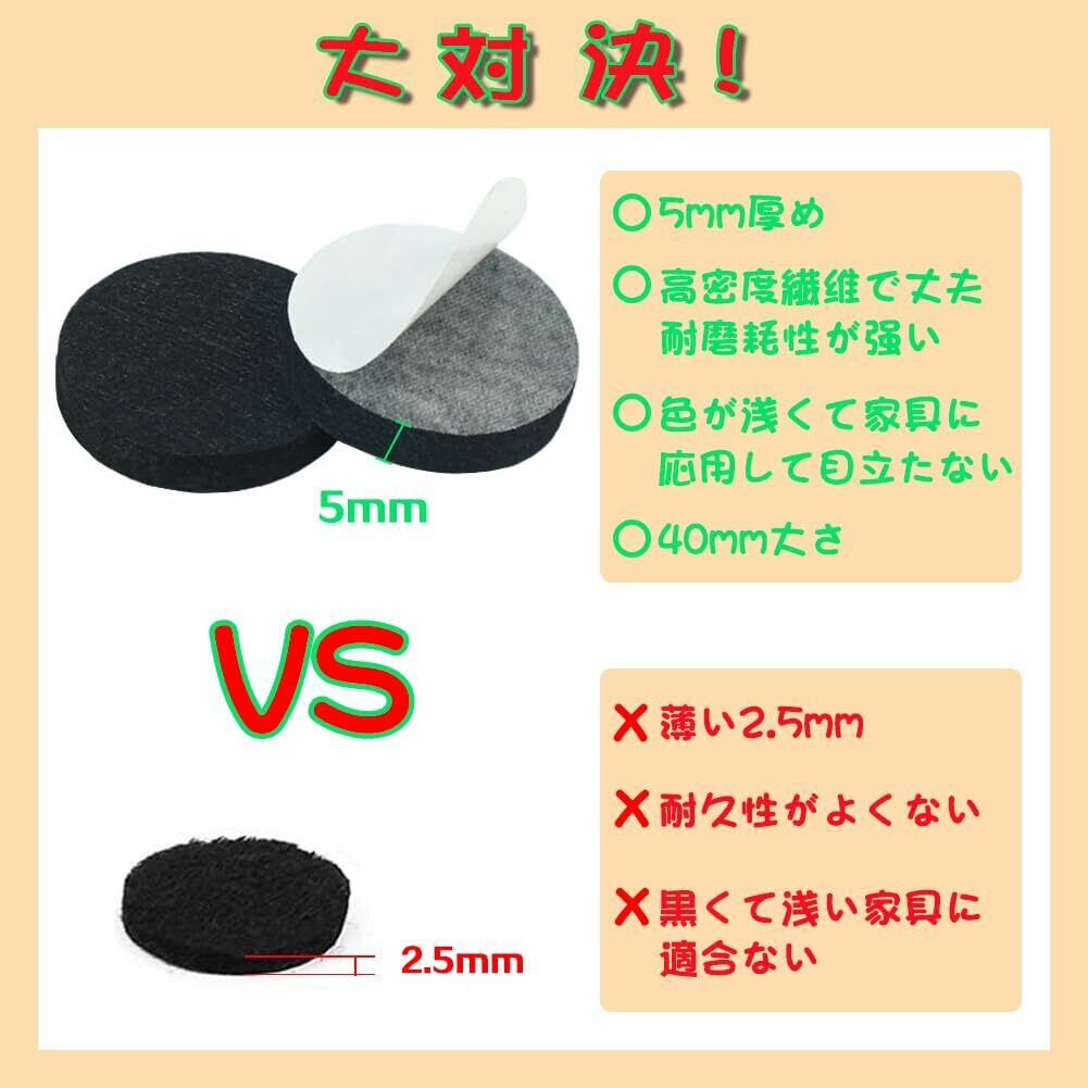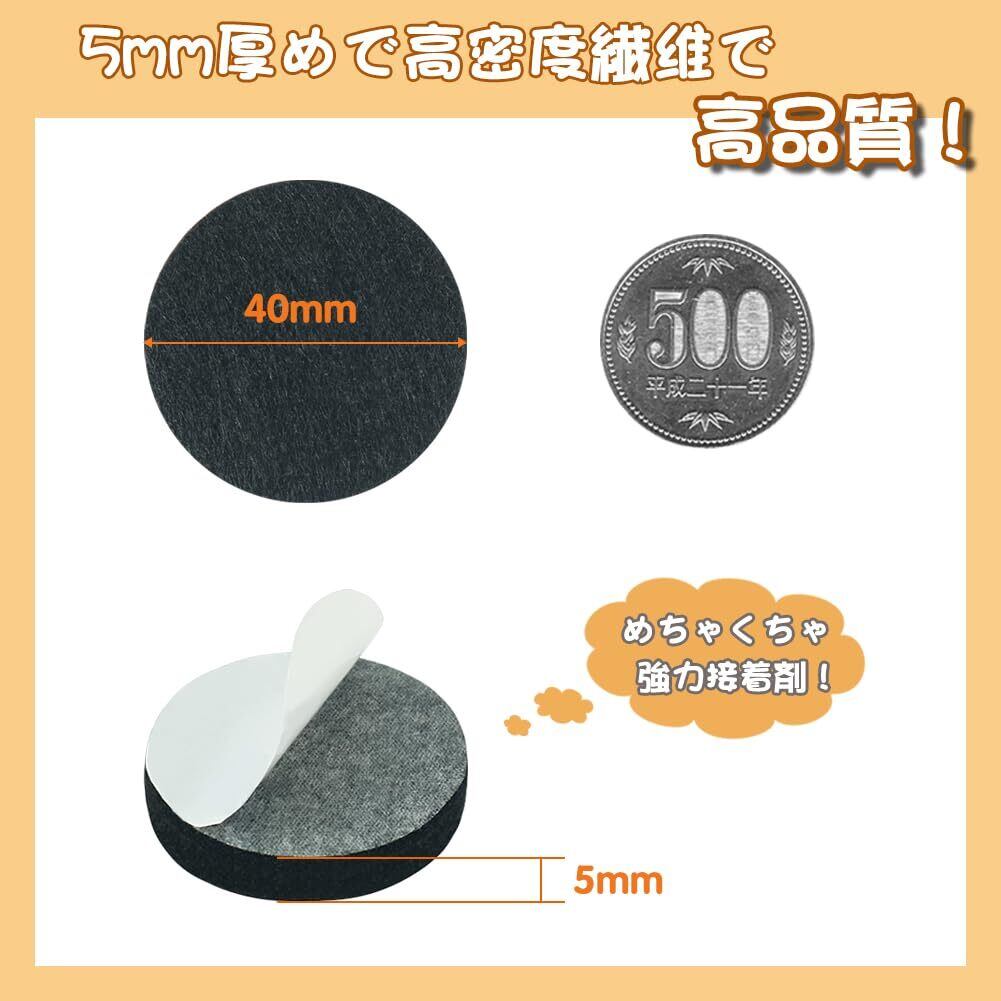 5mm厚めフェルトパッド, 24枚入り 40mm 丸い家具保護パッド キズ防止・防音 (ブラック)
