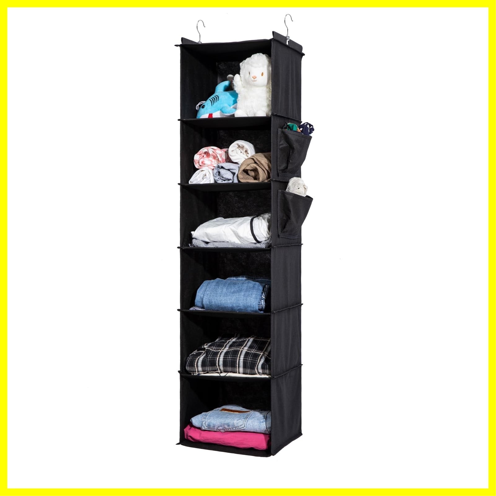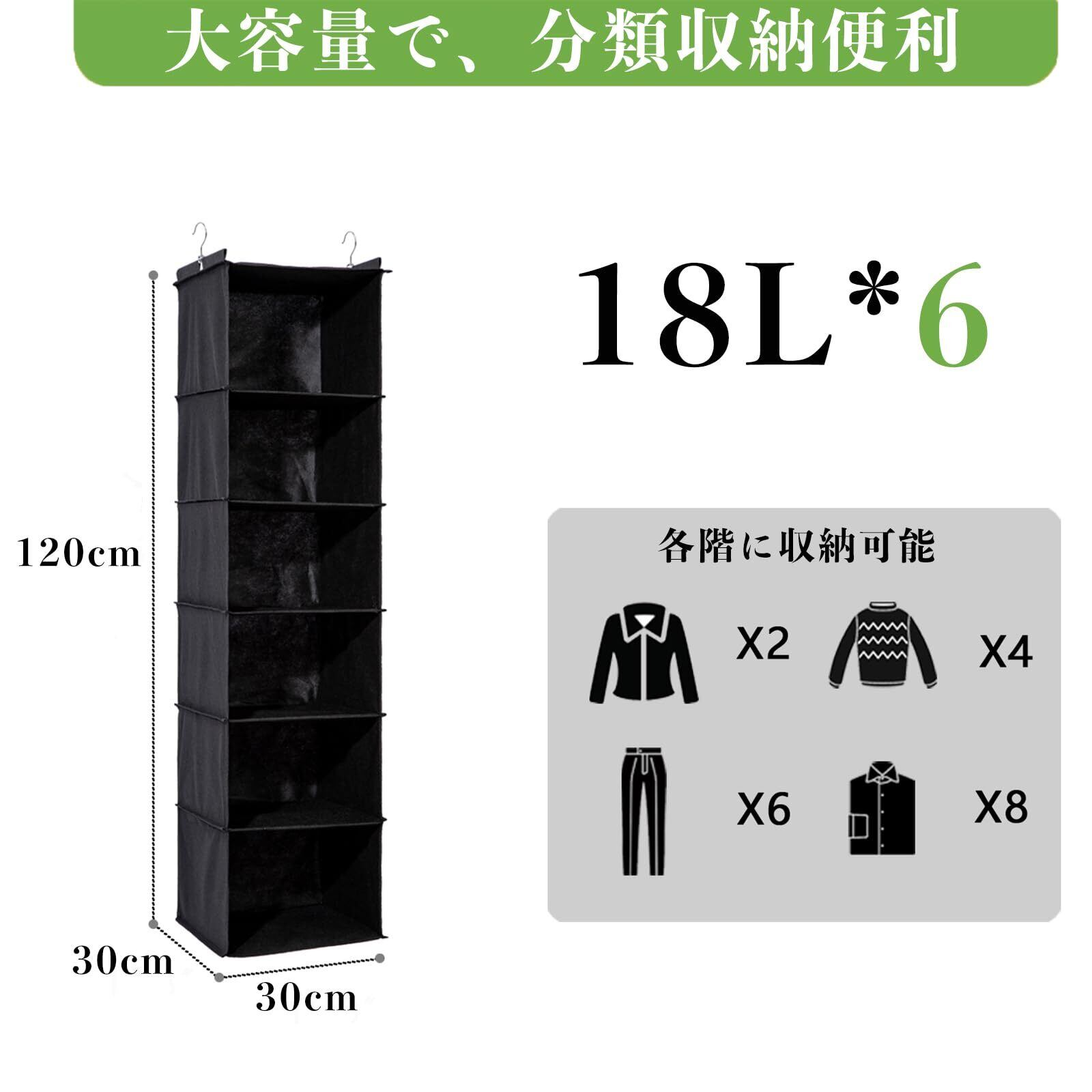 吊り下げ収納 6段 衣類ラック 【竹製天然版】 クローゼット 収納吊り下げ 大容量 帽子/鞄 収納/旅行/出張 取付簡単 折り畳み式 30x30x120cm (1#6段、ブラック)