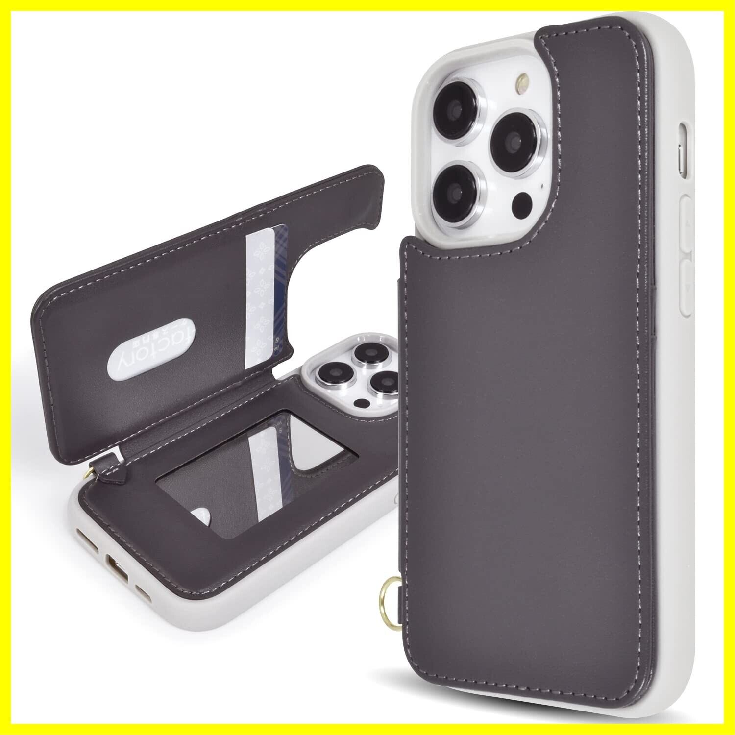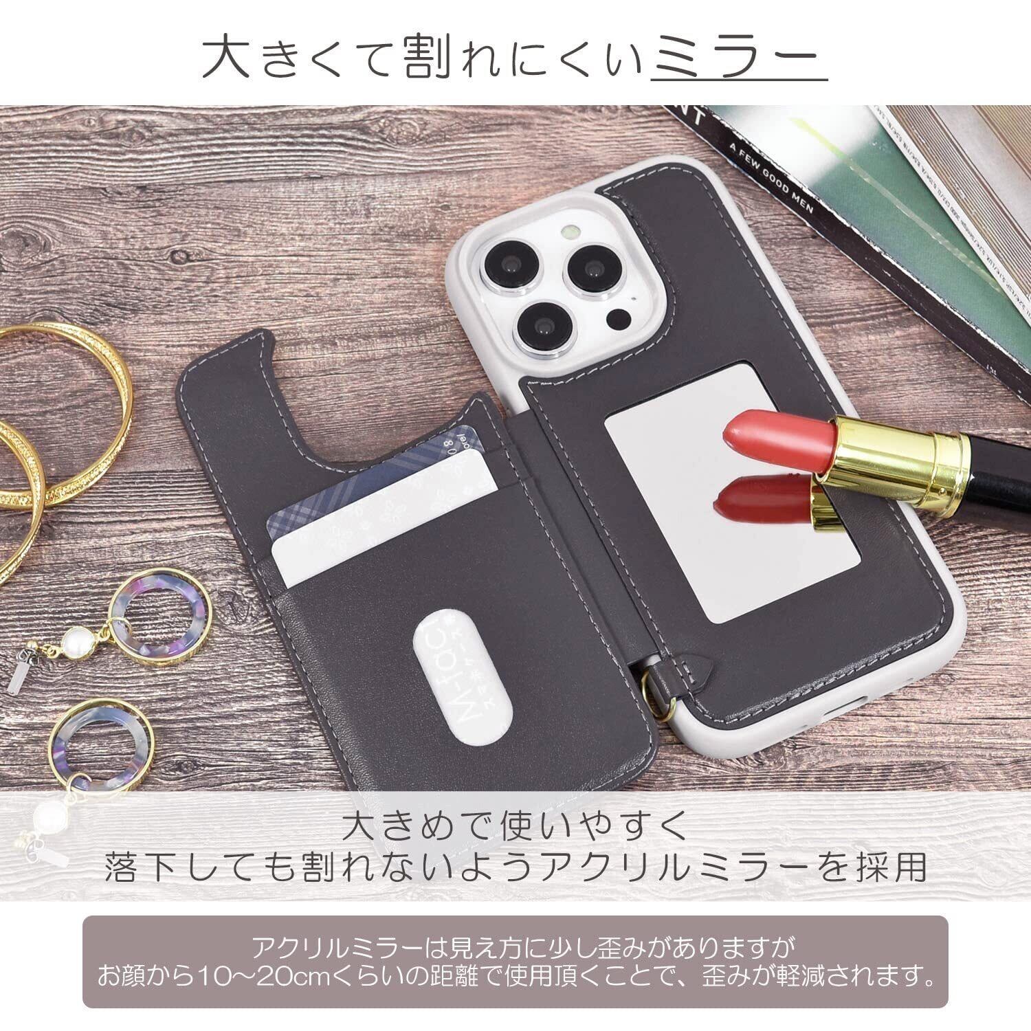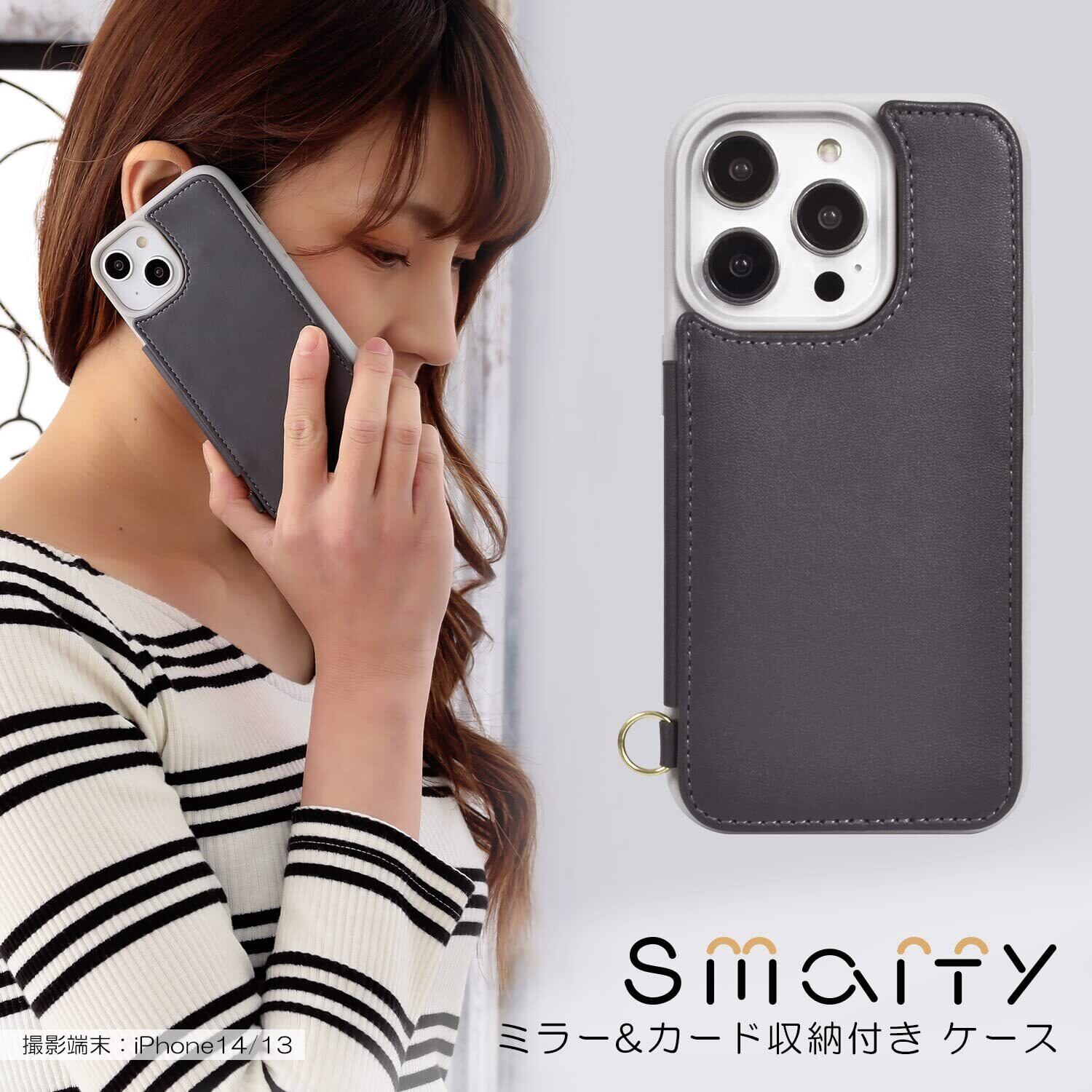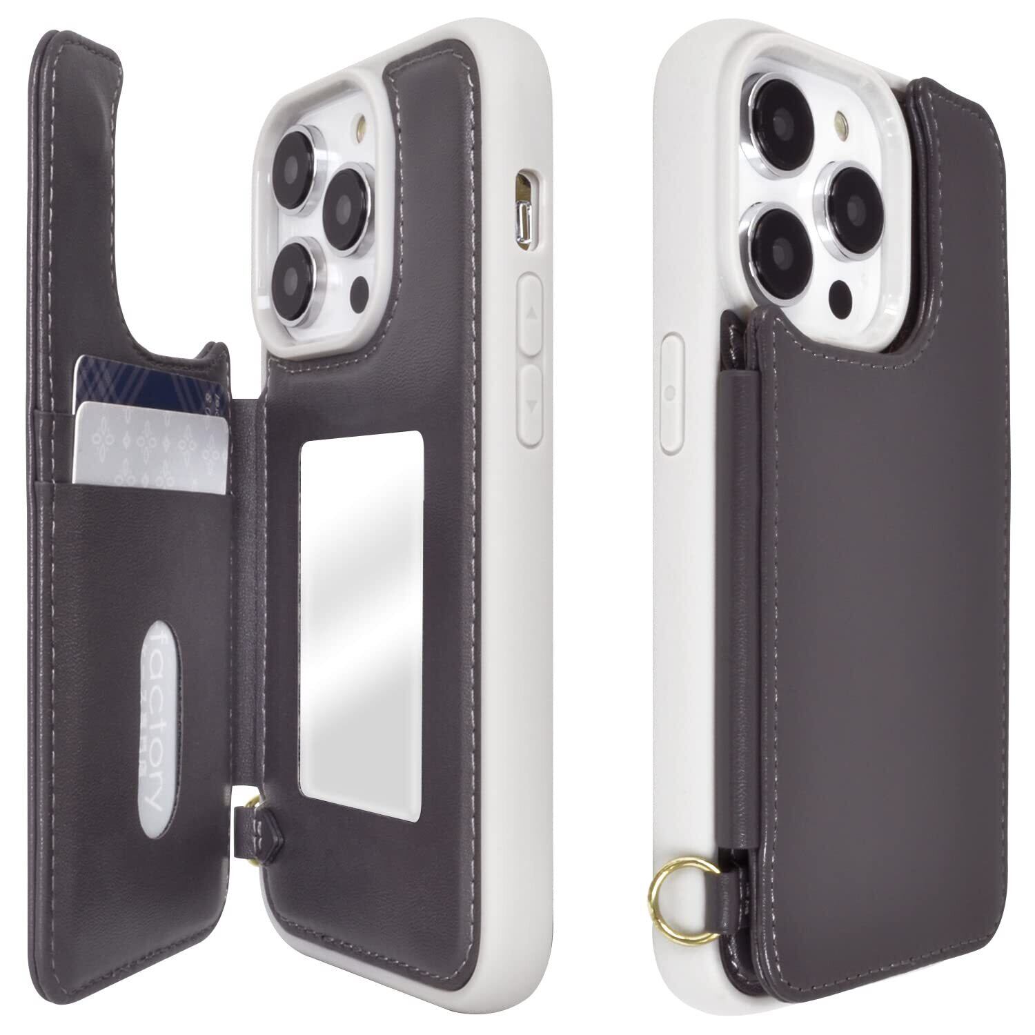 Smarfy iPhone14 Pro ケース 背面「 ミラー & カード収納付き 背面ケース 」アイフォン14プロ カード入れ 鏡付き スマホケース (アイボリーブラック)