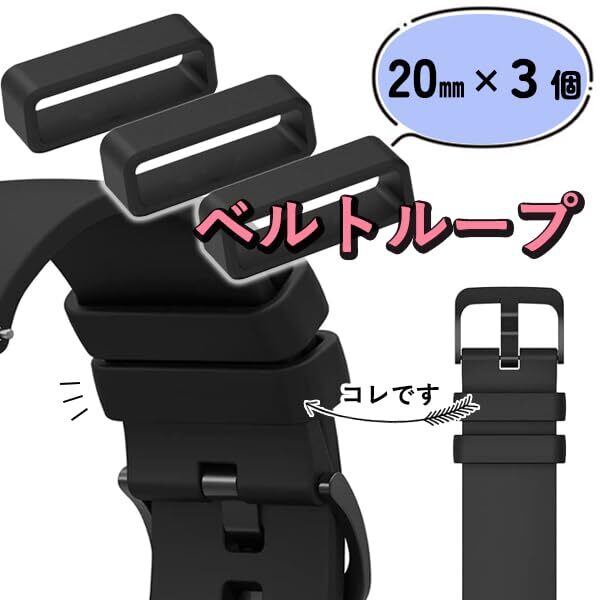 [RemarksJapan] 腕時計 ベルトループ 20mm 3個入 ウレタンバンド 遊環 ラバー バンド シリコン 時計ゴム 修理 補修 ブラック