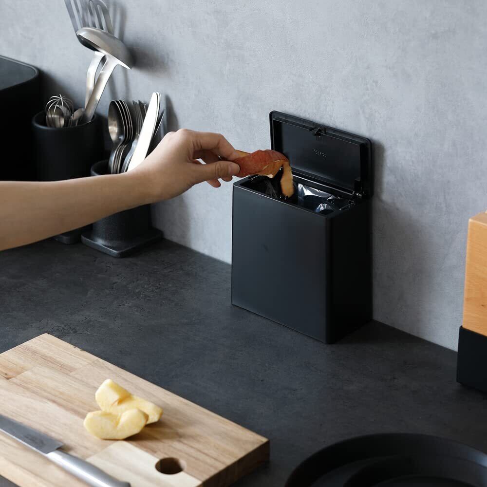 キッチンや卓上に最適なコンパクトサイズのフタ付きゴミ箱チューブラーシリーズの最大の特徴ともいえるゴミ箱本体をスッポリと覆う大きなカバー。いやな臭いも、見た目の悪いゴミ袋もすっきりキレイに隠してくれます。セットは簡単で、ゴミ捨ても楽!ピッタリと閉まるフタは、ワンプッシュで簡単に開閉できるので何かと忙しいキッチンには嬉しい設計です。キッチンの生ゴミはもちろん、洗面所やドレッサーの上でコットンやティッシュを捨てたり、狭い卓上スペースにもぴったりなサイズ。片手で持ち上げられるので、移動も簡単です。スッキリした長方形のカタチがシーンを選ばず、いろいろな場所で活躍してくれます。