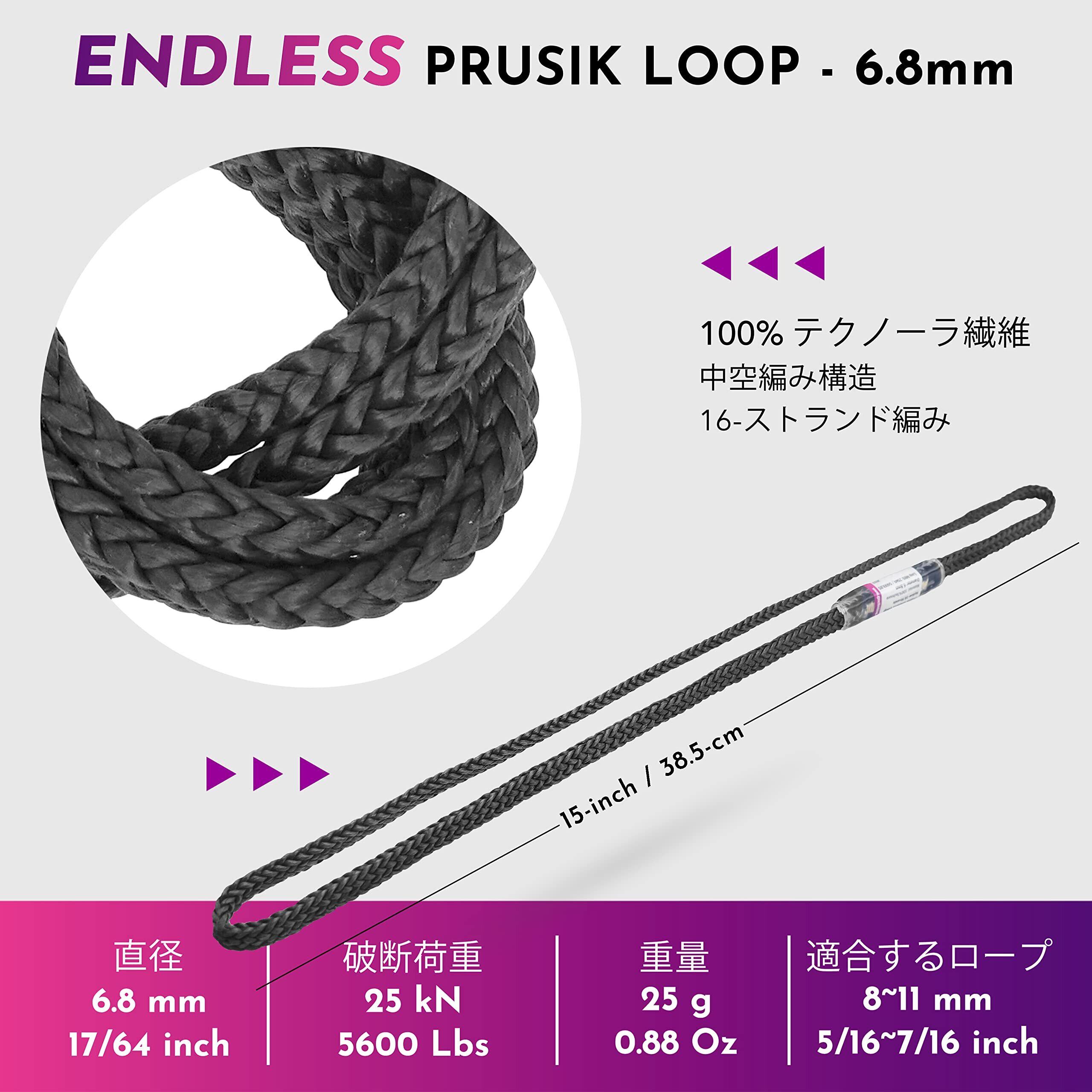 GM CLIMBING 25kN 6.8mm プルージックループ 100%テクノーラ繊維 クライミング アーボリスト レスキュー 38.5cm / 61cm
