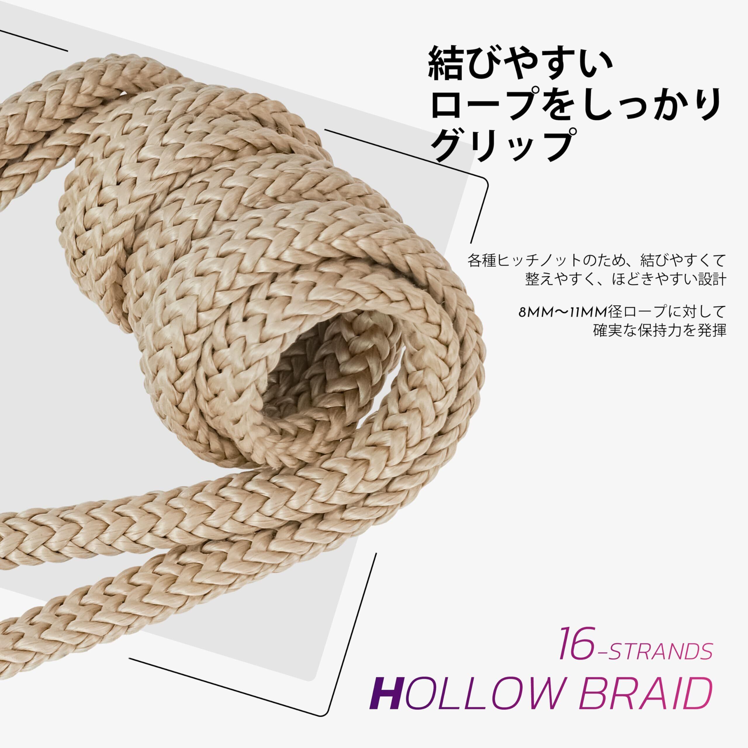 中空編み構造◆◆16-ストランドの中空編み構造は柔らかくて扱いやすいです。芯のない中空編み構造はより力強く締めることができ、ライン/ロープに対する優れるグリップ力を発揮できます。また、ノットを結ぶことも解くことも簡単にできます。
