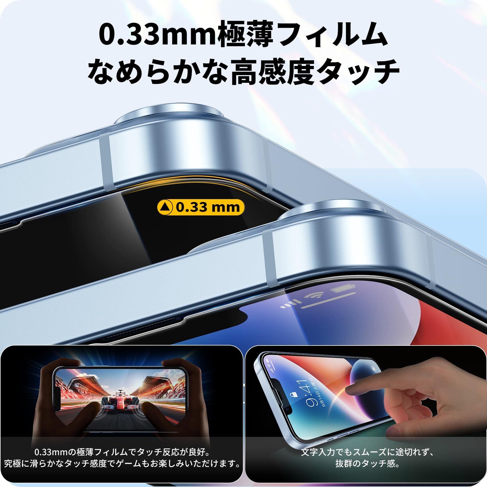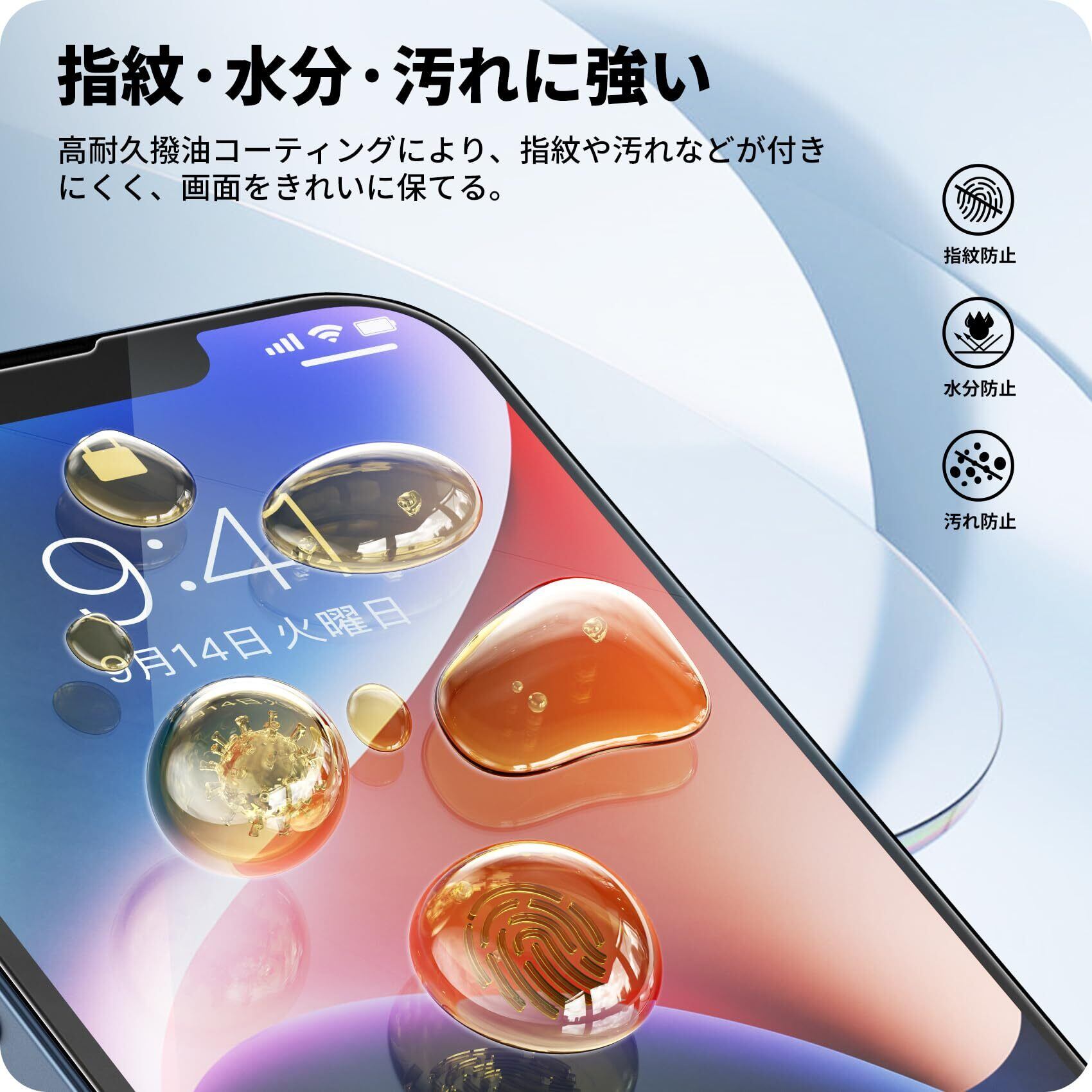 「99%の透明感・指紋防止」このいphone 16e/14/13 pro/13用フィルムは99%という高い透過率を持つ極薄ガラス材料で、画面の精細さを保ちながら、滑るようなスムーズなタッチ操作を体感できます。また、撥水撥油のAF(Anti-Fingerprint)コーディング加工により、指紋がつきにくく、汚れや油分をはじき、着いても拭き取るだけで綺麗になります。