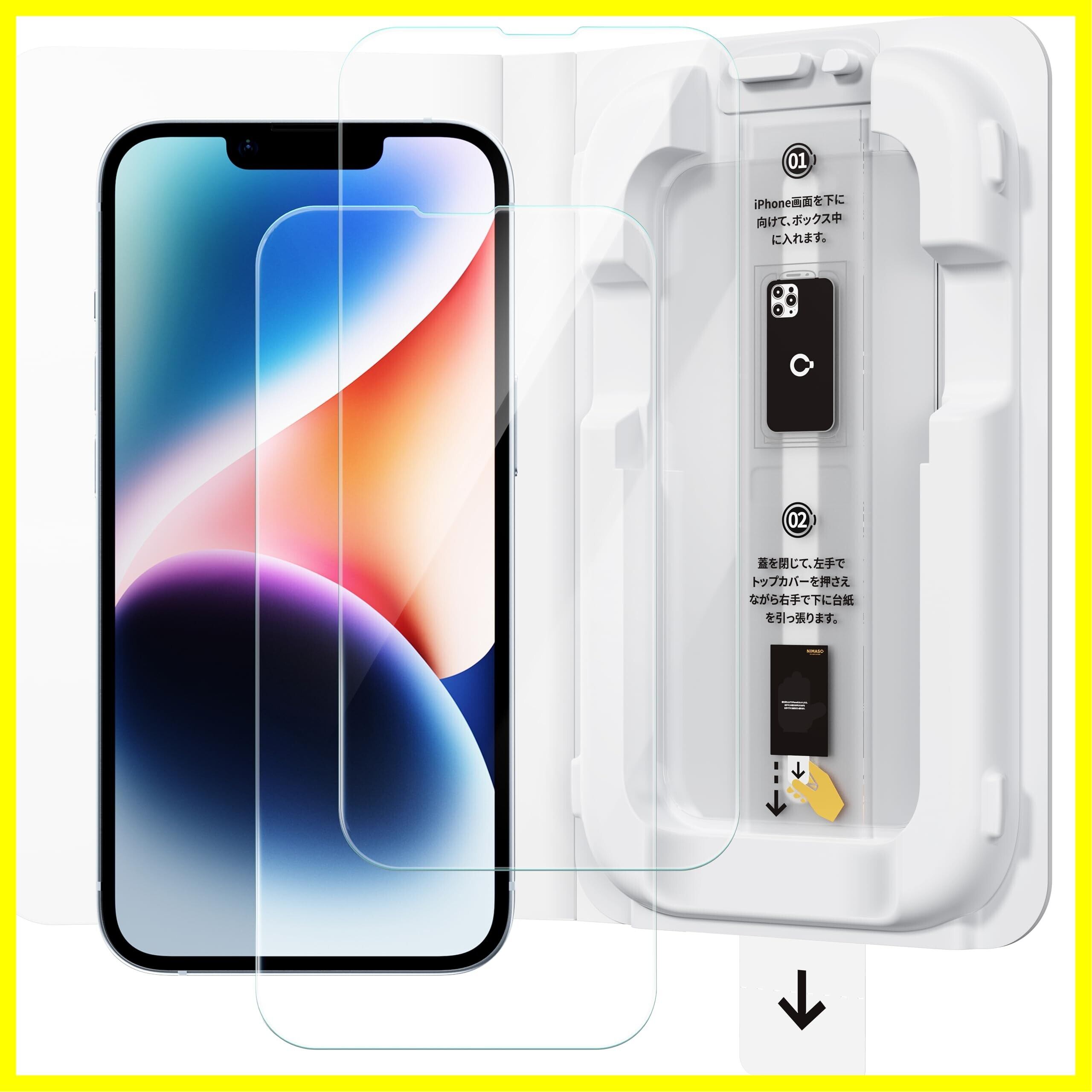 「バリ楽Box」NIMASO ガラスフィルム iPhone 16e 用/iPhone 14 用/iPhone 13 Pro 用/iPhone 13 用 保護フィルム 強化ガラス 超簡単貼り付け 気泡ゼロ 指紋防止 ホコリ自動吸着 自動除塵セット付き 2枚セット アイフォン16e/14/13/13プロ(6.1インチ)対応 NSP24D1213