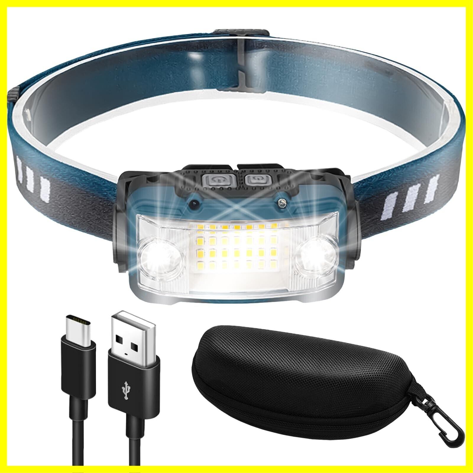 ヘッドライト LED 充電式 ネックライト 17時間点灯 ケース付き 超広角 小型 センサー搭載 防災 防水 キャンプ 登山 釣り 神奈川県発ブランド Cercano (セルカノ) (1, 青色)