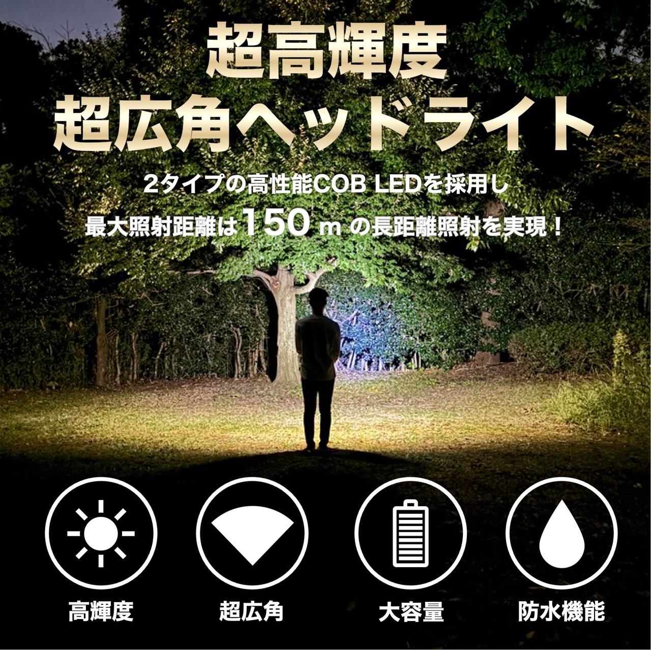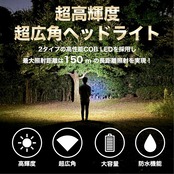 超広角・高輝度のヘッドライト:非常に明るいLED COBライトを採用し、超広角で超高輝度を実現しました。暗い夜の道でも安心して過ごすことができます。