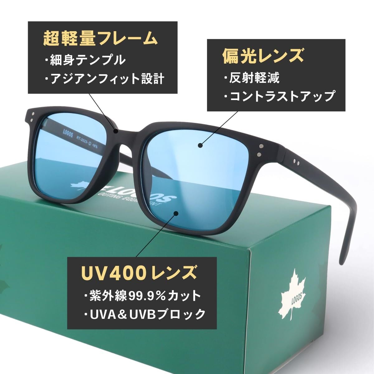 [藤田光学] LOGOS サングラス メンズ 偏光 おしゃれ 運転 ドライブ 自転車 釣り スポーツ 眩しさ軽減 UVカット 紫外線 へんこう さんぐらす 超軽量 ケース付き