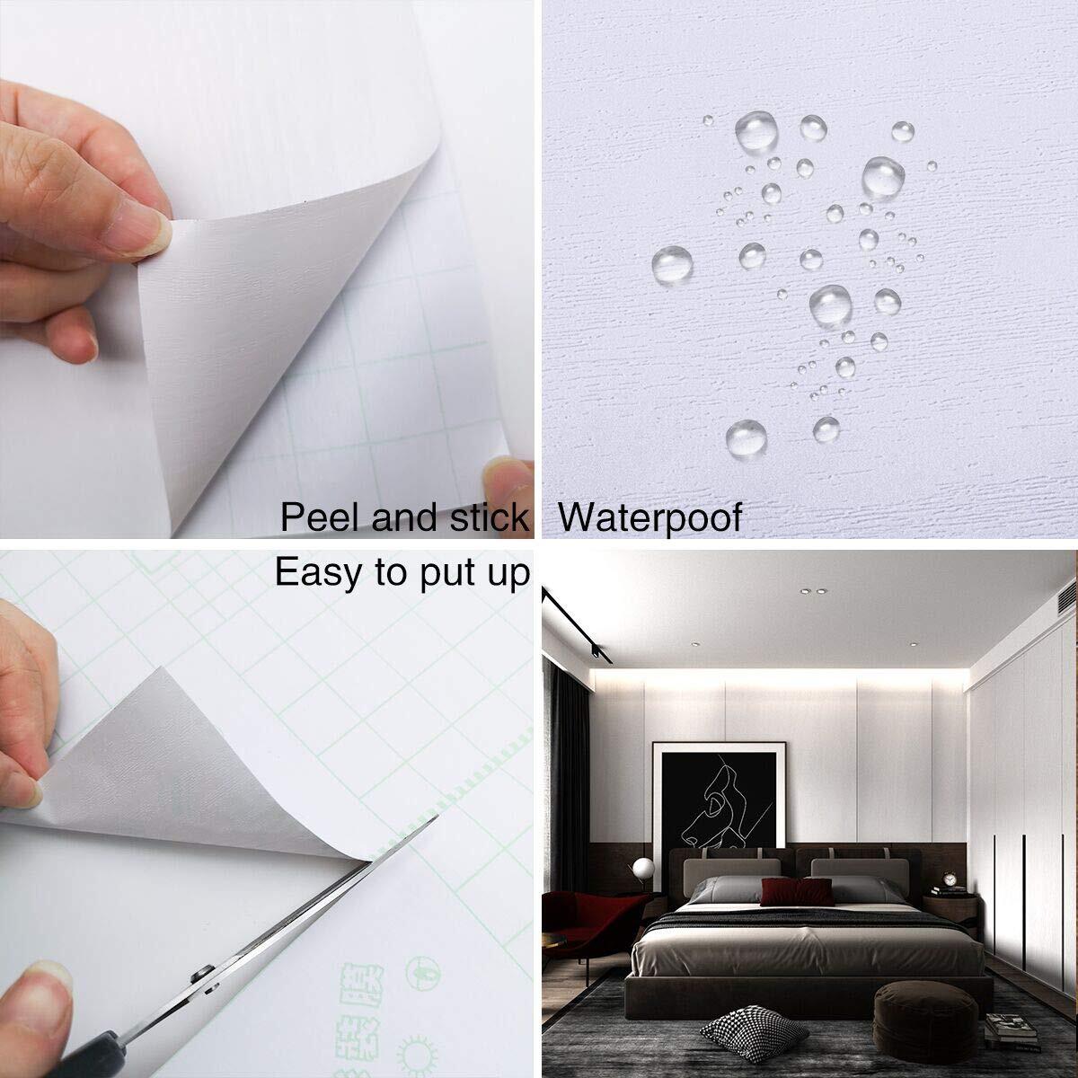 ✪【材質と寸法】ホワイト3D木目カベ紙はエチレン材料で制作、安全環境保護。サイズは15.74 x118.11インチ(40cmx3m)です。