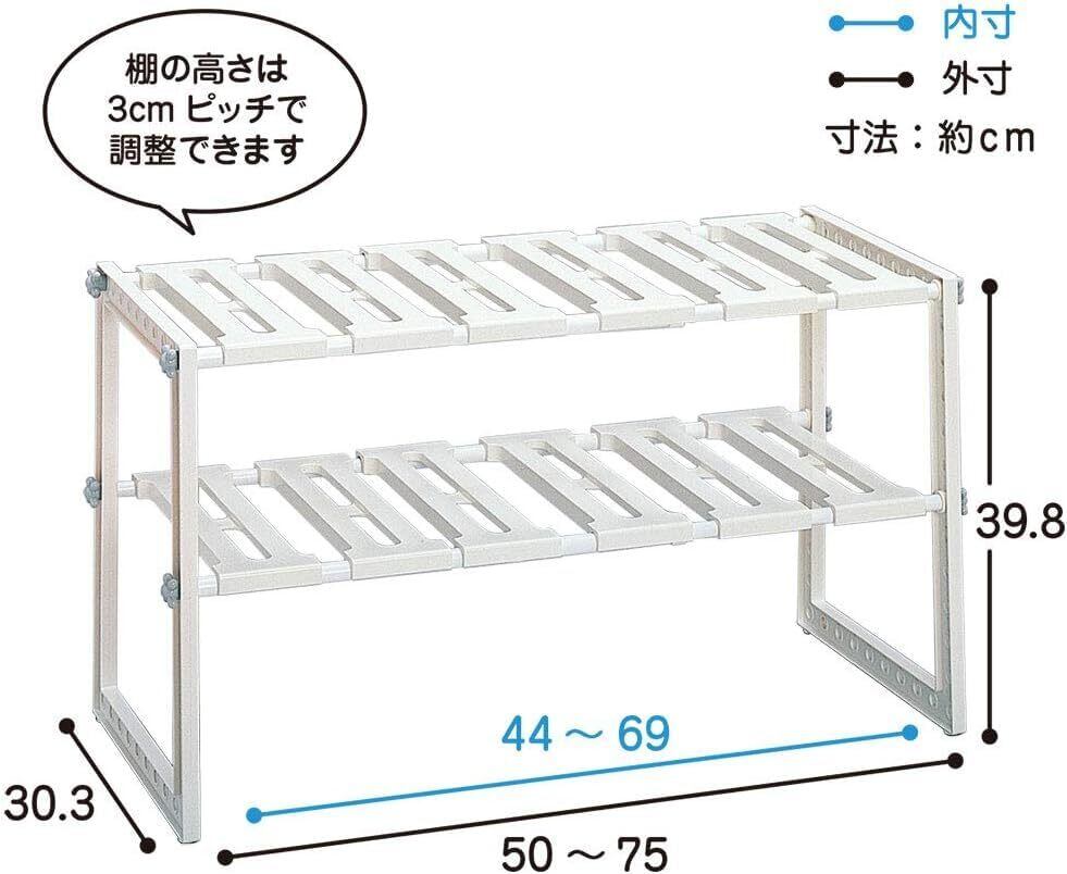 Belca(ベルカ) 日本製 キッチン収納 シンク下フリーラック 伸縮タイプ 幅50~75×奥行30.3×高さ39.8cm ホワイト シンク下収納 2段 棚 VR-EXT