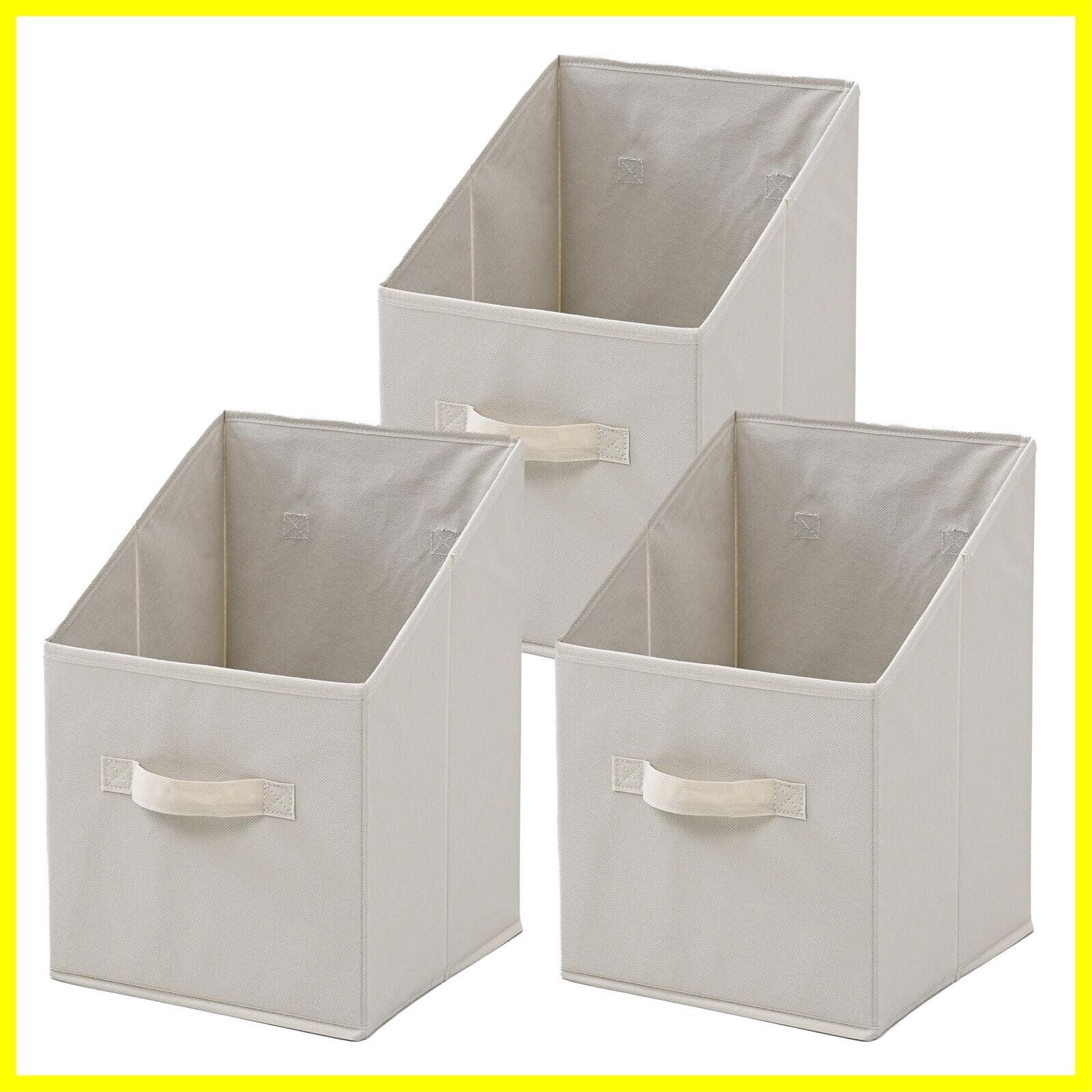山善(YAMAZEN) 収納ボックス 縦型 取手付き カラーボックス対応【3個組】 衣類 小物 収納 折りたたみ可能 どこでも収納ボックス 幅25×奥行25×高さ38cm 完成品 ベージュ YTCF-3PT(BE)