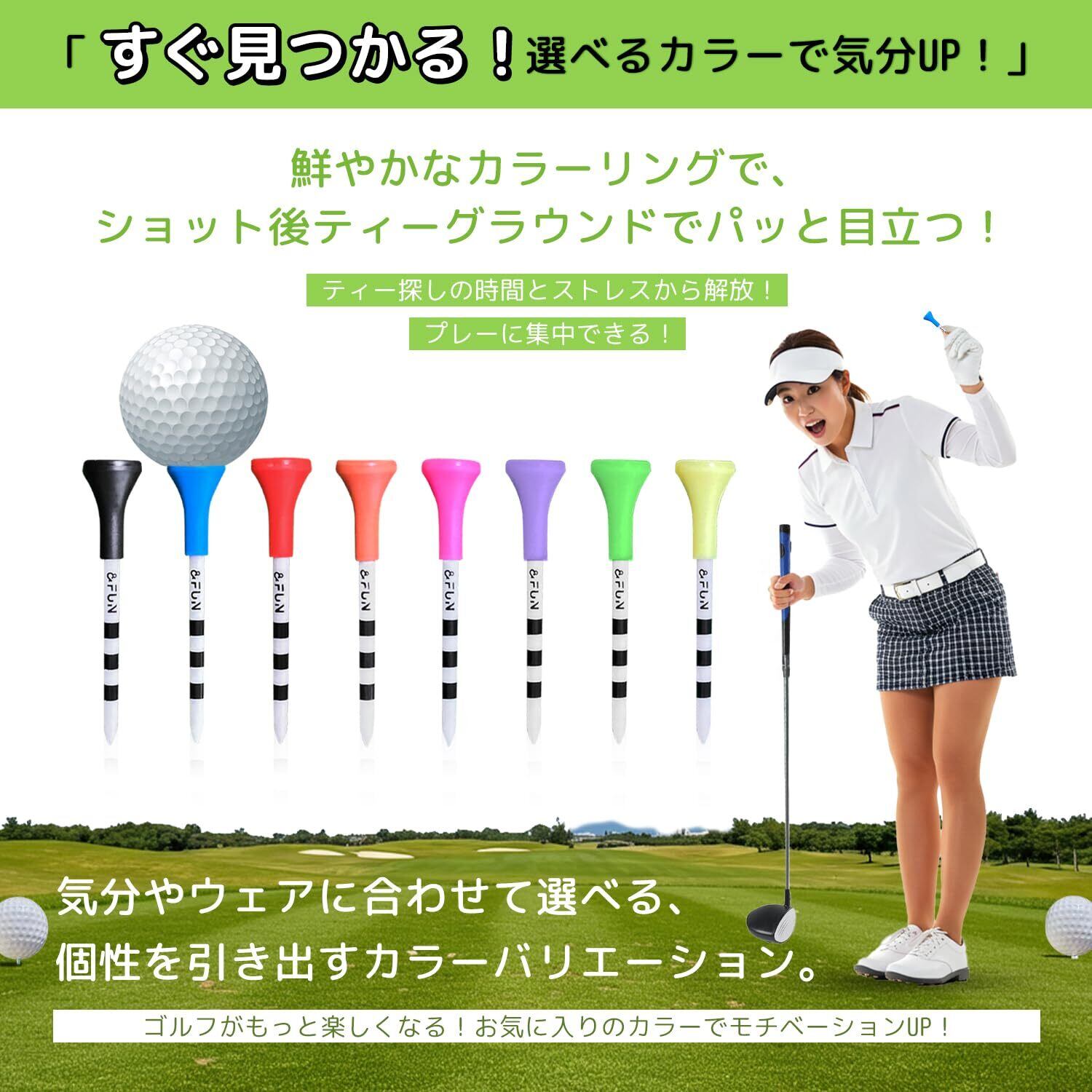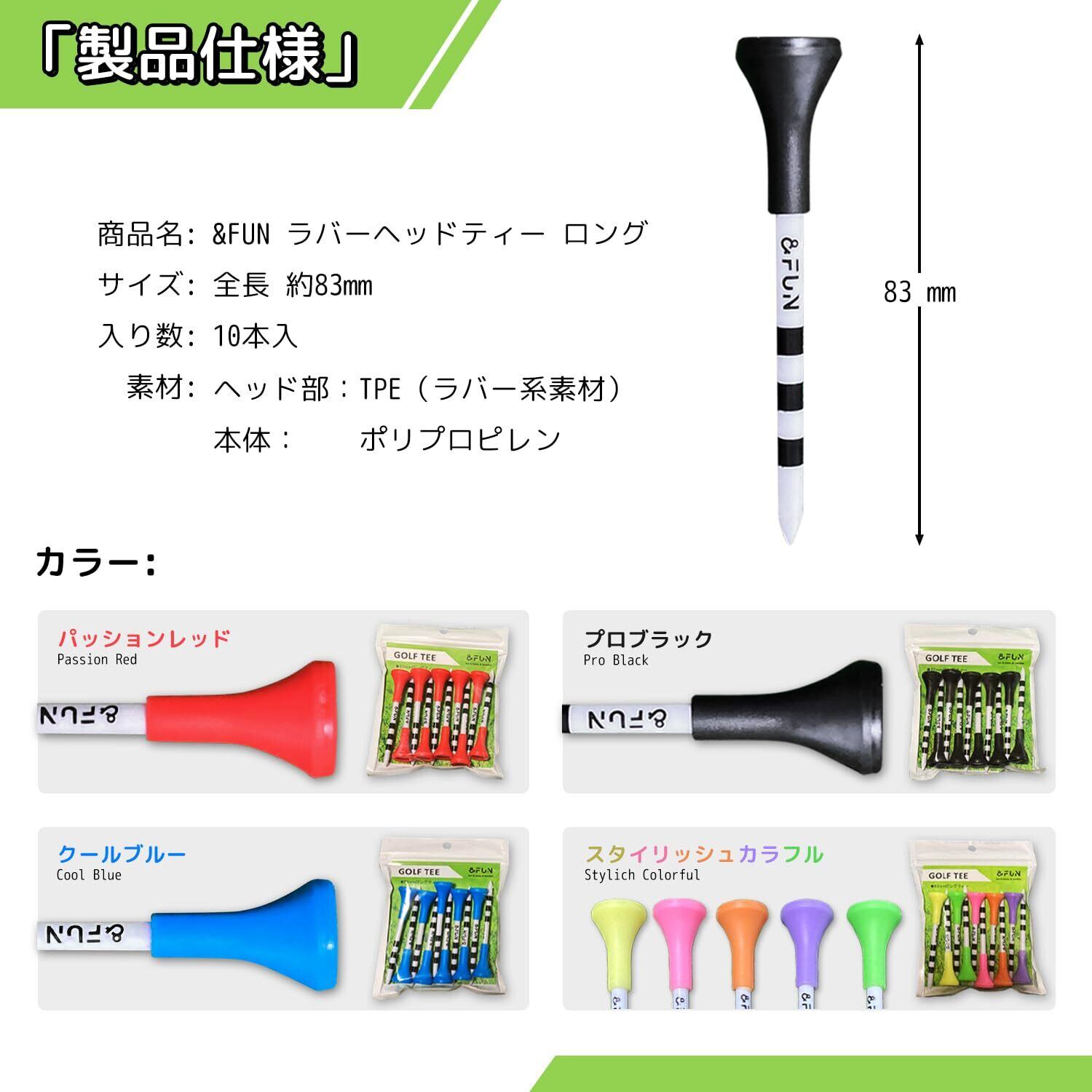&FUN(アンドファン) ゴルフティー ラバーヘッド ロングティー 83mm 10本入 ボールを乗せやすい
