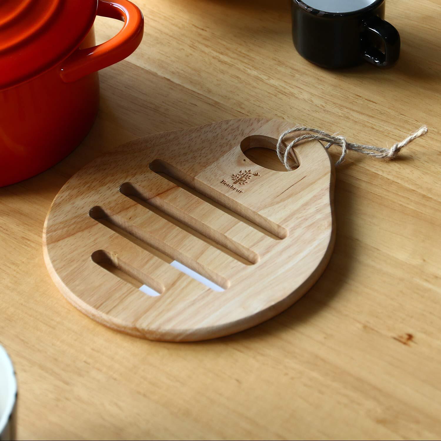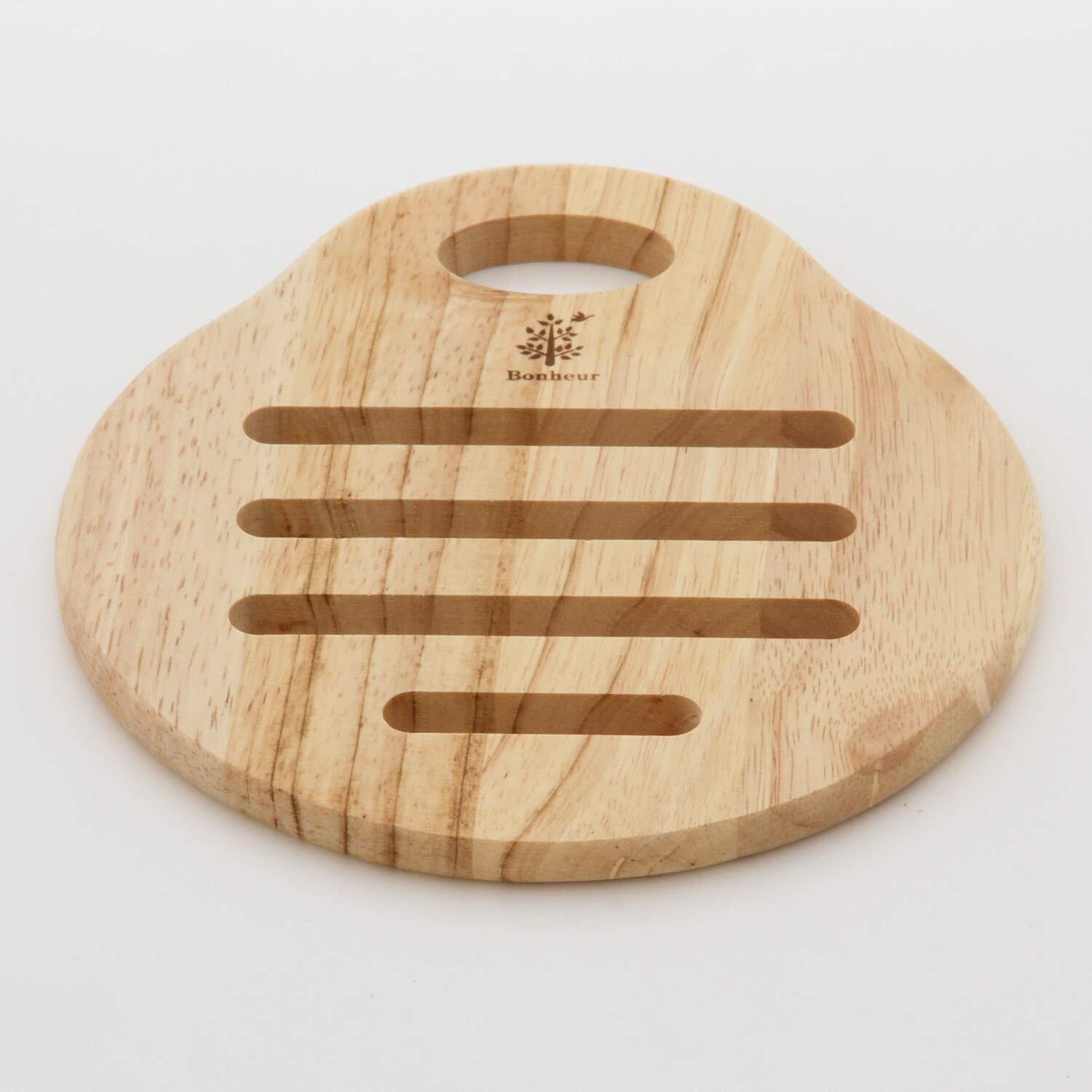 不二貿易 鍋敷き トリベット 縦18×横16×厚さ1cm ナチュラル 梨型 天然木 木製 ポットマット 持ち手付き ボヌール 22646
