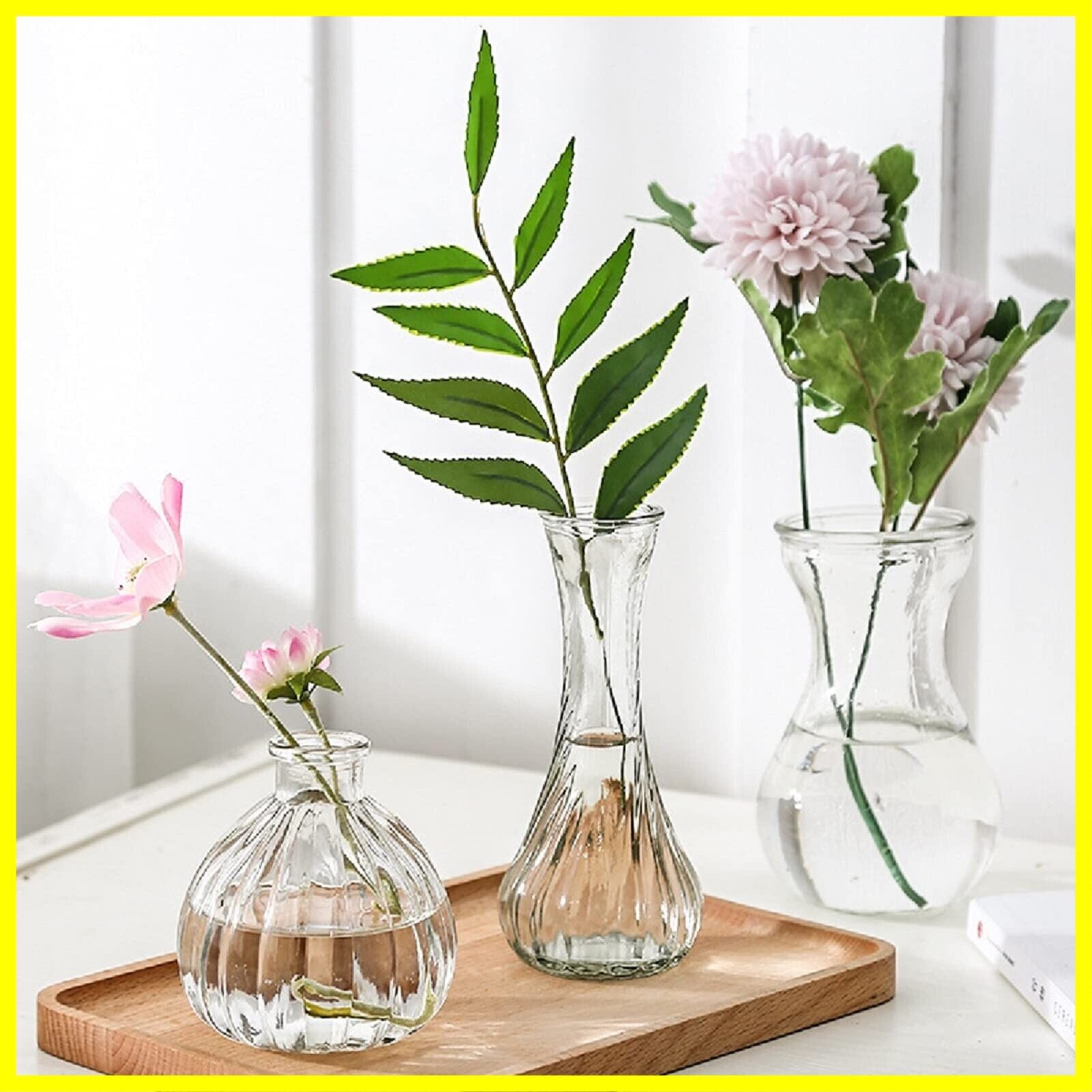 ガラスの花瓶 3つセット ミニ花器 一輪挿し 透明 - フラワーベース花器 ガラスベース ボトル + 3つセット 水栽培 おしゃれ シンプル 生け花 造花アレンジ インテリア インテリア雑貨 飾り瓶 北欧 レトロ風