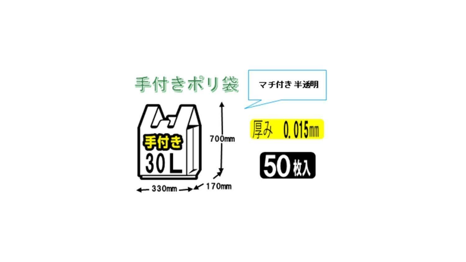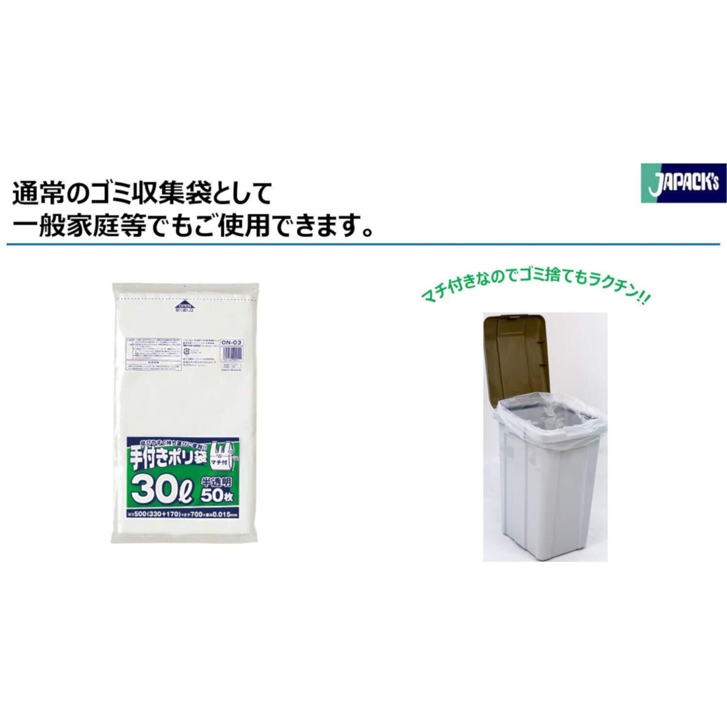 ジャパックス ゴミ袋 半透明 横33+マチ17×縦70cm 厚み0.015mm 手付き マチ付 ポリ袋 30L 2個セット ON-03 50枚入 2個セット