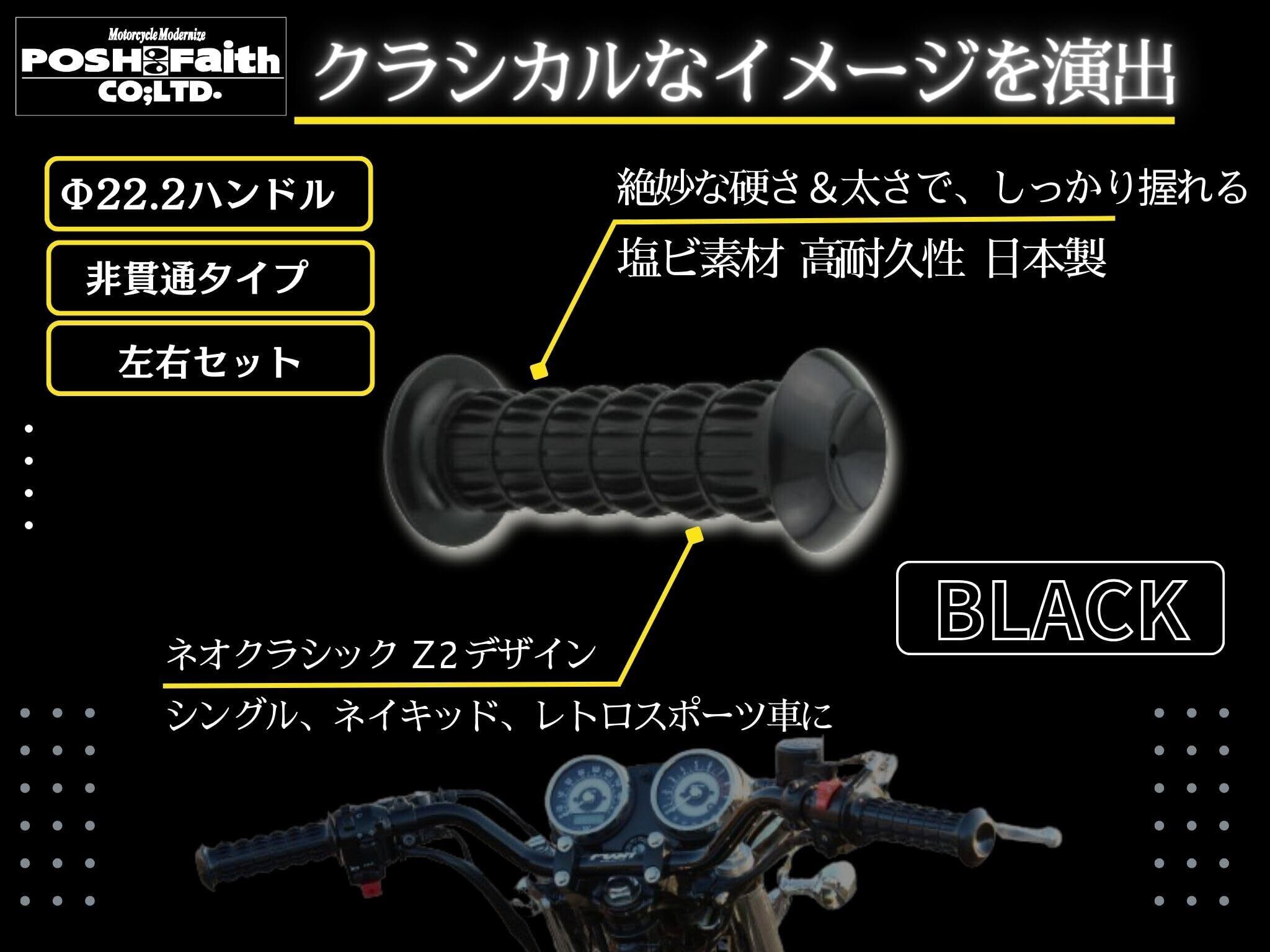 ポッシュフェイス(POSH FAITH) バイク用グリップ Z2タイプクラシカルグリップ 22.2mmハンドル用、非貫通タイプ ブラック 010572-BK-10