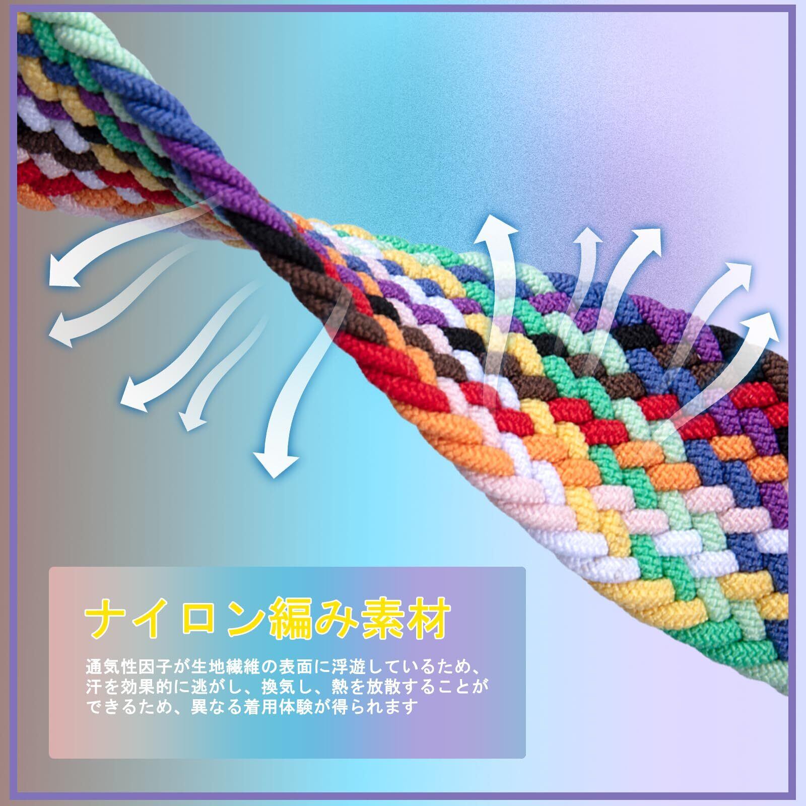 【ソフトのナイロン素材】この編み込み バンドは、伸縮性である高品質ナイロン素材で作られています。軽量で柔らかいし、滑らかなバンド編み面は肌に快適な感触を与えて、肌にもやさしいし、通気性も抜群で、快適な着け心地を感じられます。変形にくい素材なので、汚してしまった場合でも丸洗いこともできて、便利です。
