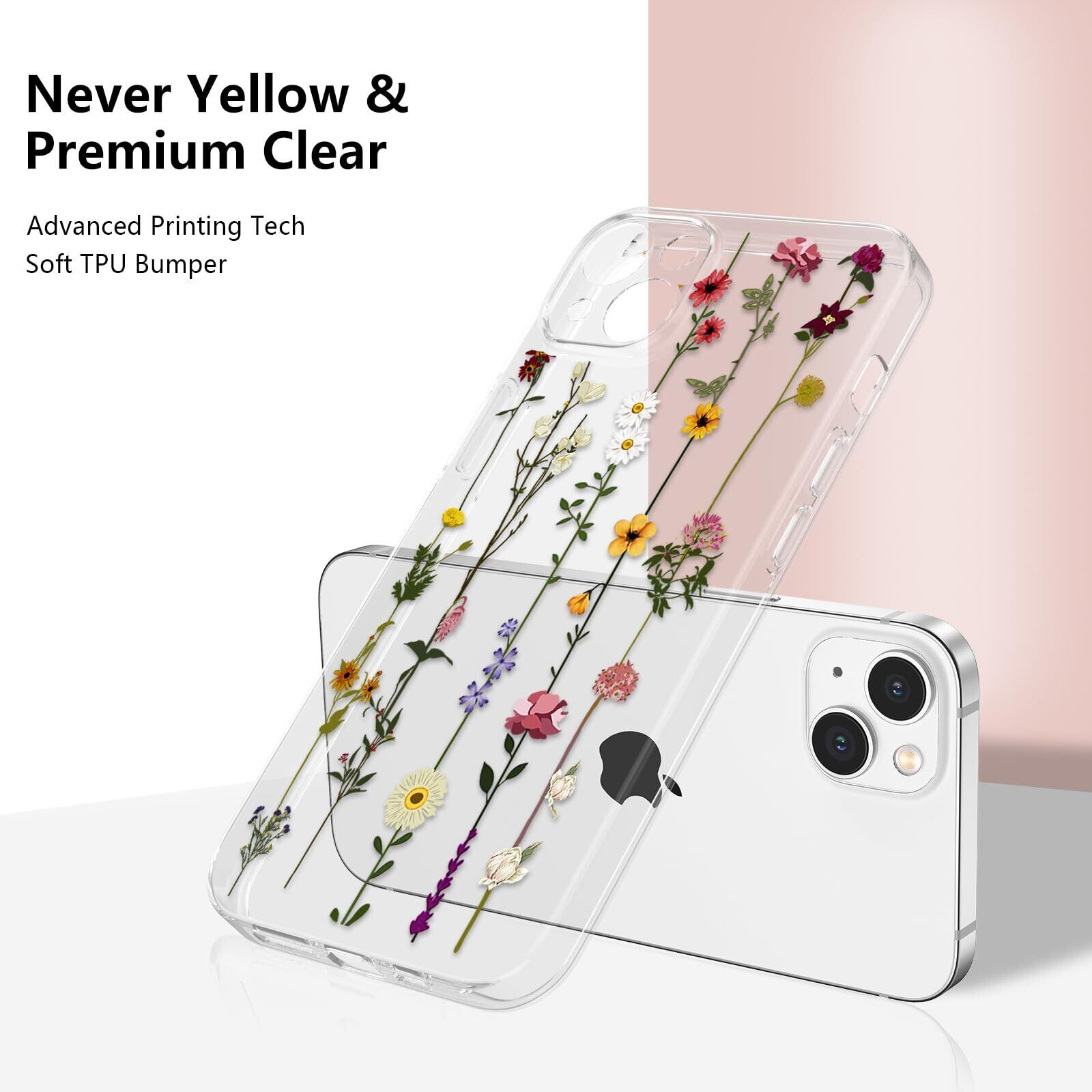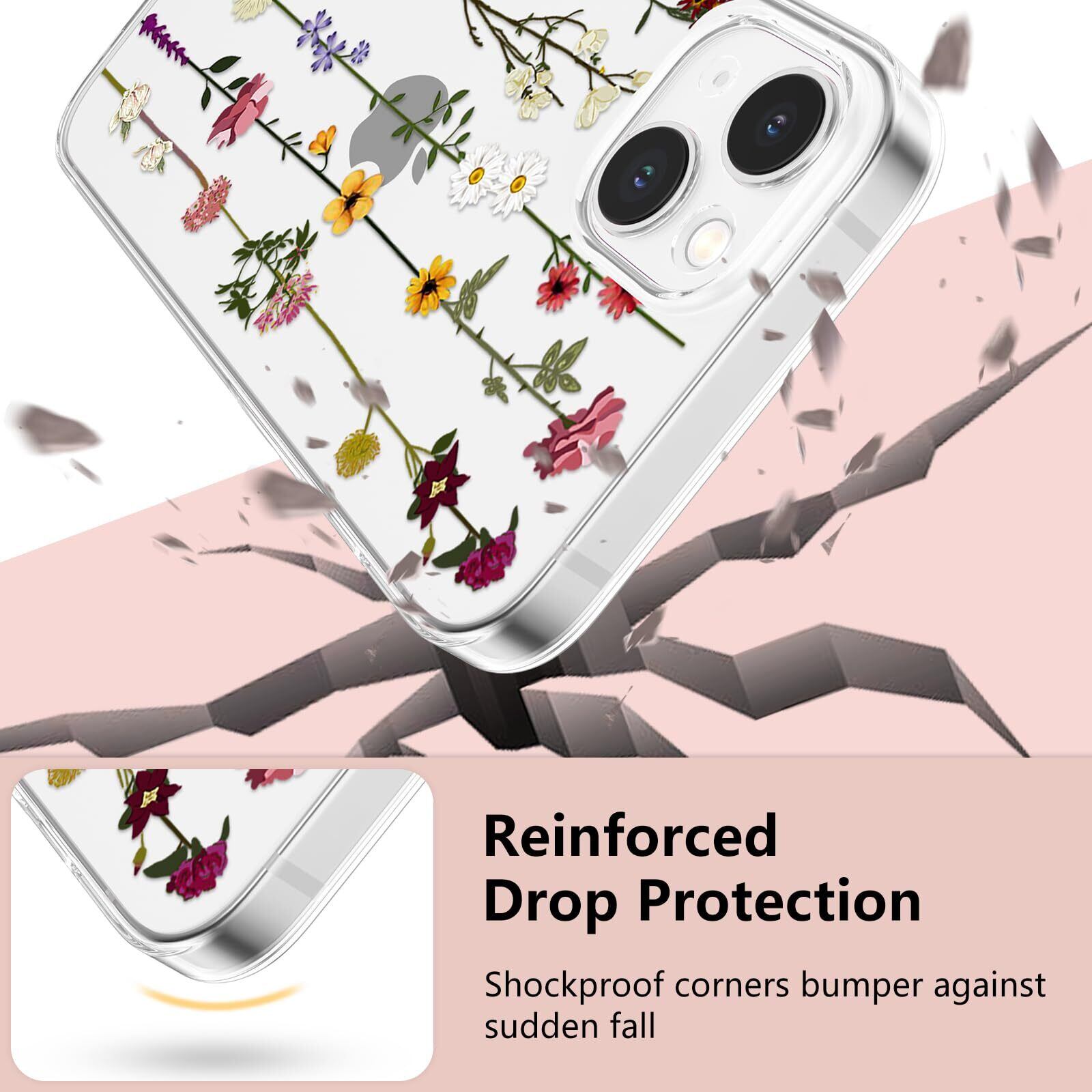 ZTOFERA iPhone 15 用花柄 クリアケース いphone15 おしゃれ かわいい 透明カバー 花 フローラル ソフト シリコーン スマートケース アイフォン15 ケース 韓国 人気 女子 耐衝撃 軽量 iphone15 携帯電話ケース