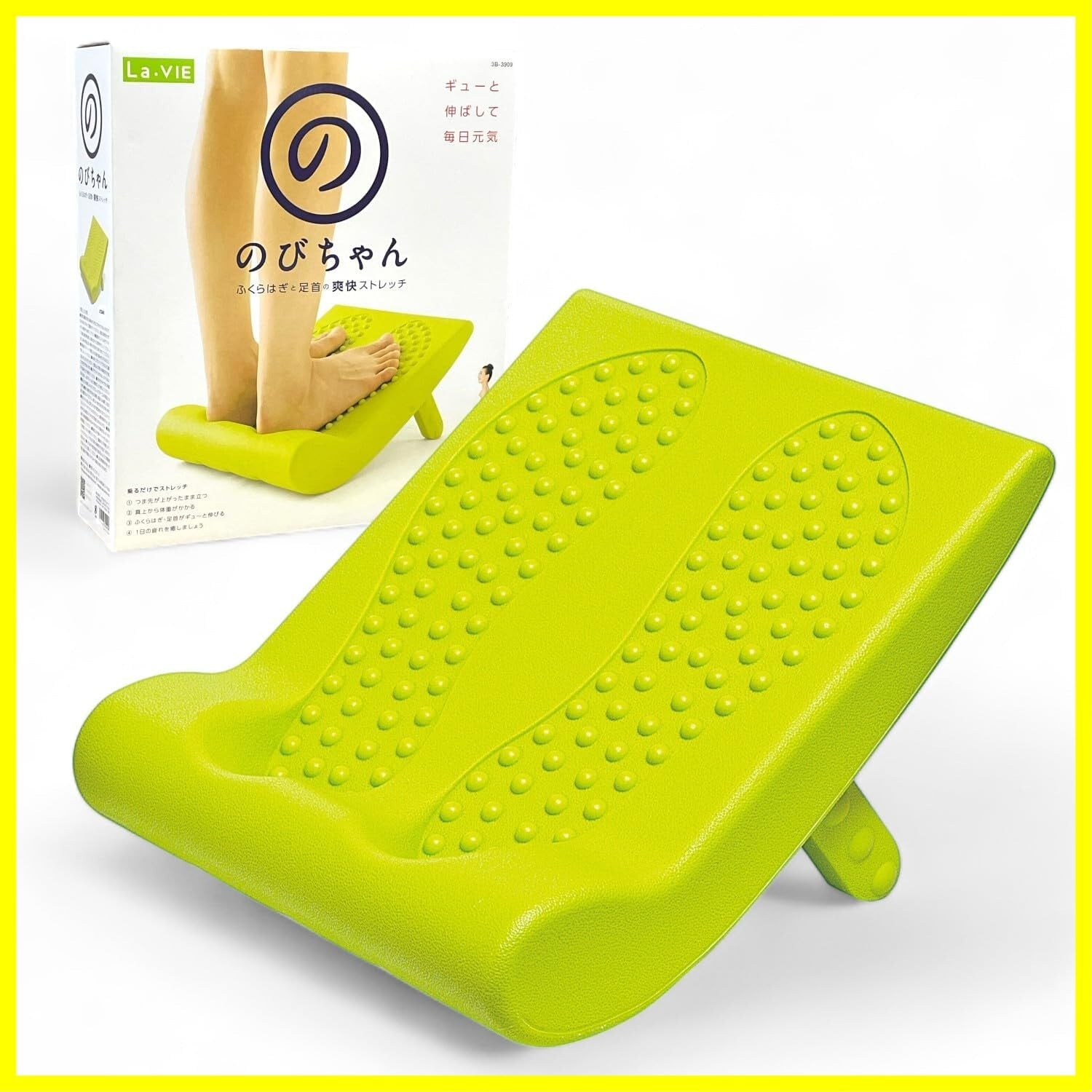La-VIE(ラヴィ)の「のびちゃん」は、足首やふくらはぎを伸ばすために設計されたストレッチボードです。傾斜角度は15度・25度・35度の3段階で調整可能。立って乗るだけで自然にストレッチができるため、運動前のウォームアップや日常のリフレッシュタイムにも活用できます。