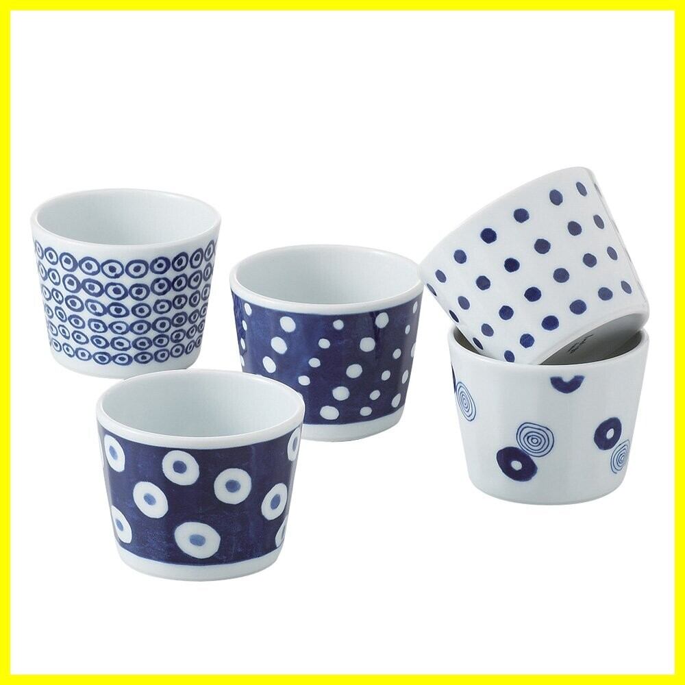 西海陶器 藍丸紋 軽量カップ揃え5pc 13304