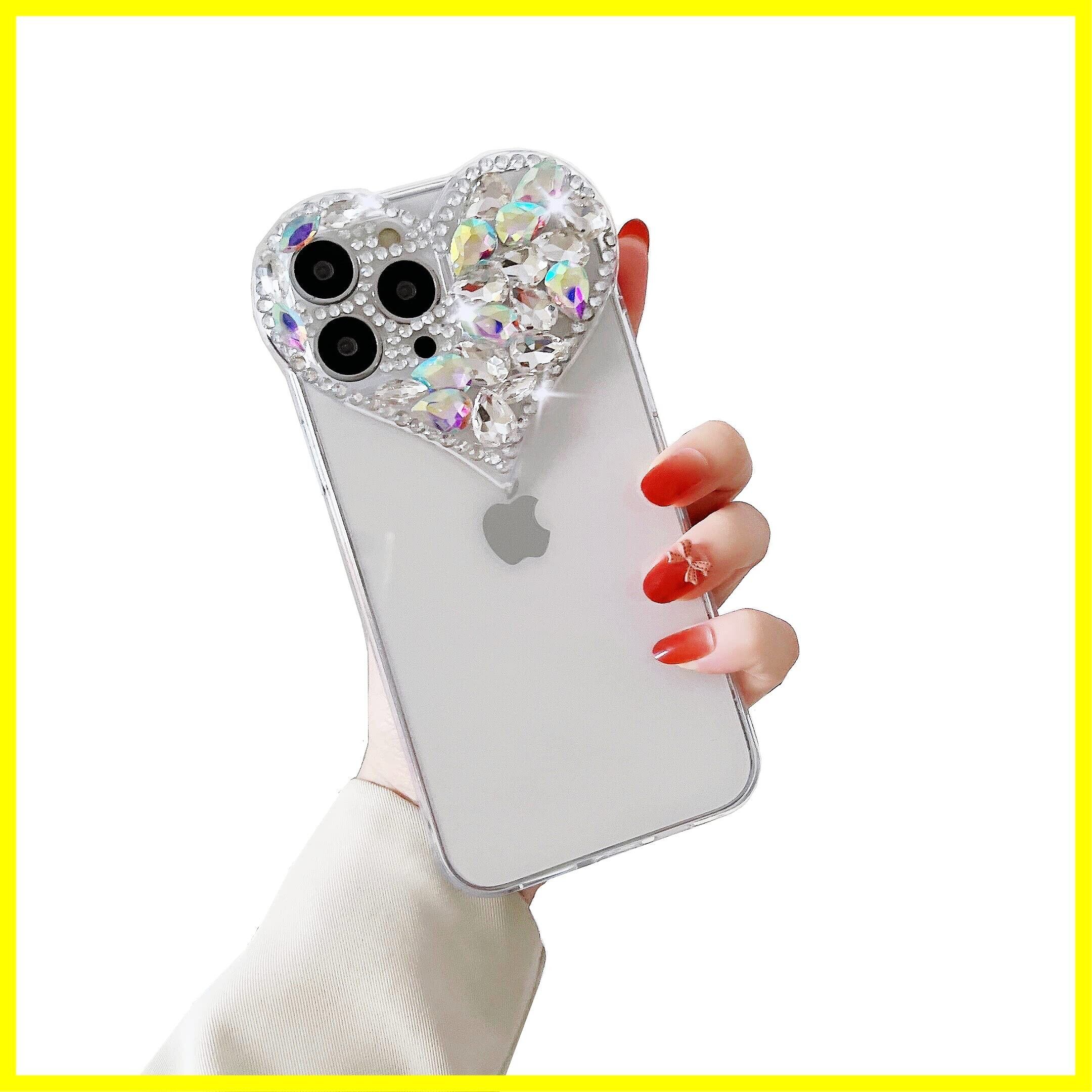 CrazyLemon 適用 iPhone 7 / 8 / SE 第二世代 ケース おしゃれ かわいい ハート デザイン キラキラ ラインストーン 付き カメラ 保護 ソフト シリコーン ケース (for iPhone 7 / 8 / SE 2020 Case Luxury) - クリア
