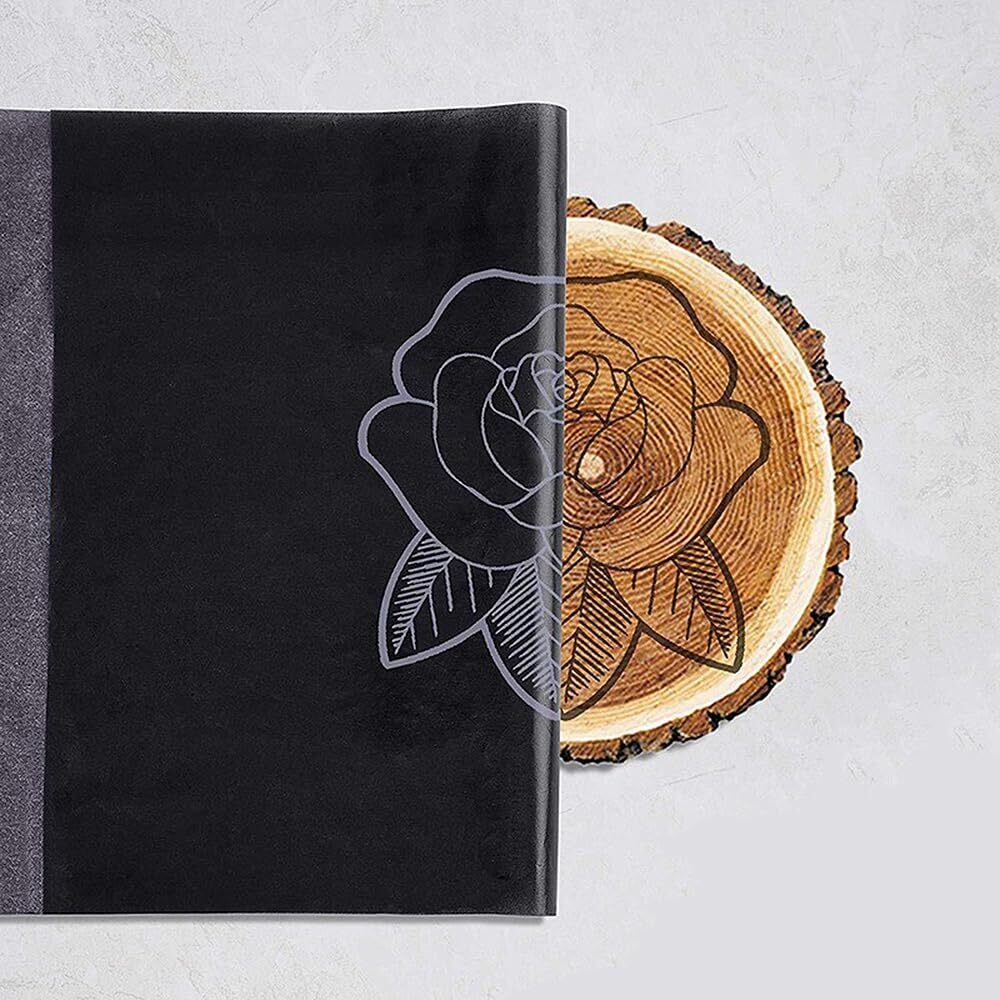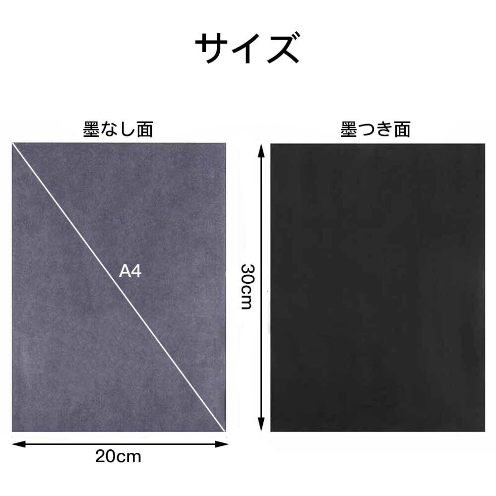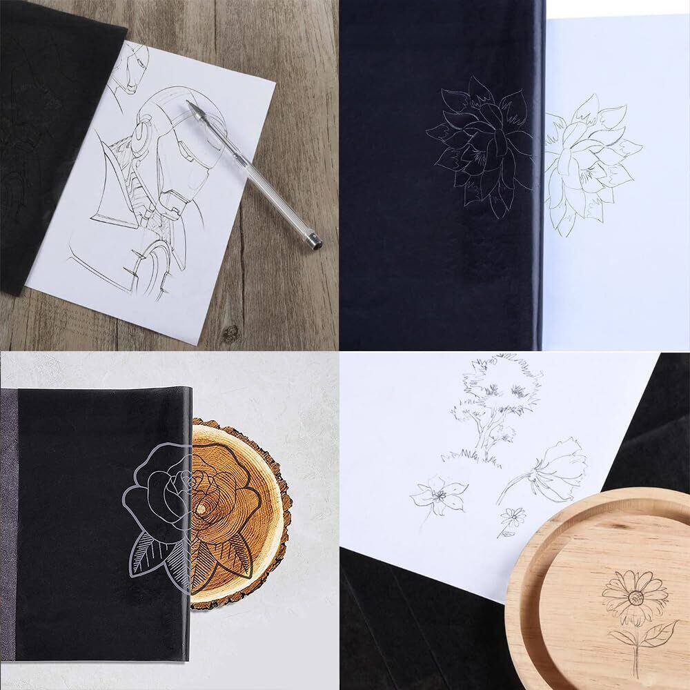 【時間の節約】カーボン転写紙は、工芸美術を簡略化することができ、あなたのデザインを簡単に移すことができます。イラストや文字を描くだけで、線画を描くことができ、効果的です。手作りのプロジェクトを楽しく面白くすることができます。黒色を使用することで、線がしっかりと位置に固定され、インクが紙にしっかりと浸透し、コピーがより鮮明になります。
