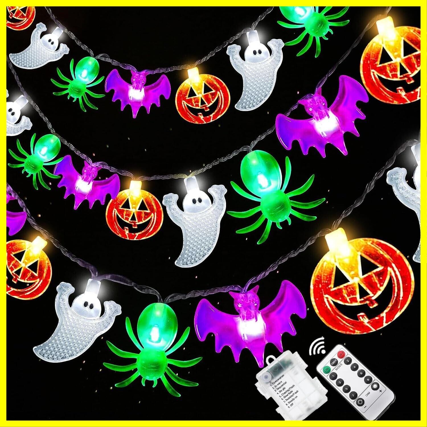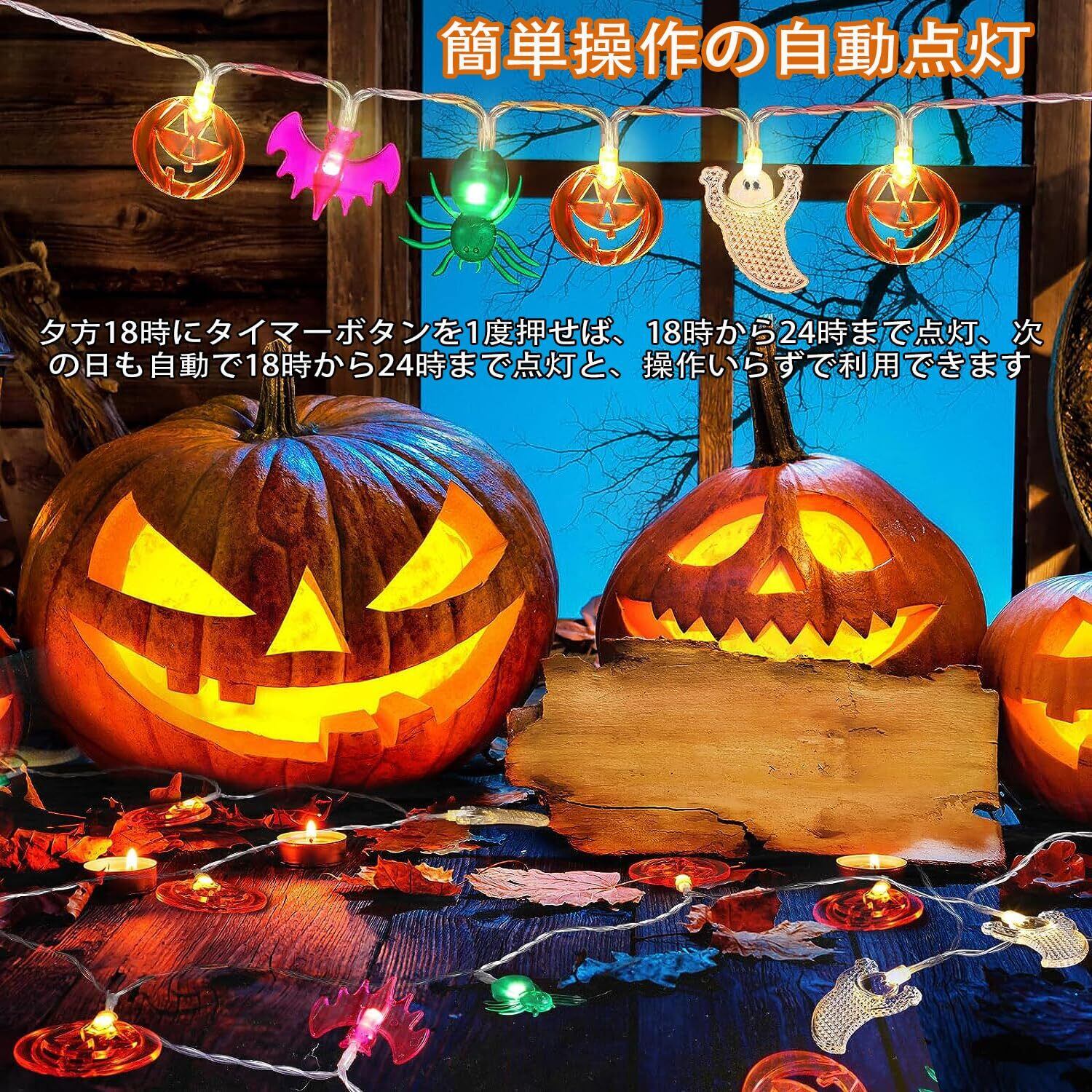 【ハロウィンを華やかに演出!】 ハロウィーンの定番キャラクターグッズが手軽に飾れる「カボチャ+お化け+コウモリ+クモ型LEDイルミネーションライト」。単三電池を3本(別売り)使用するだけで、屋内のイベントやパーティー、屋外のキャンプや玄関など、場所を問わずお好きなところに飾り楽しむことが可能です。キュートな配色と笑顔の表情が家族を幸せにし、庭や庭、パーティーなどに置いても、来場者やゲスト、通行人の注目を集めます。