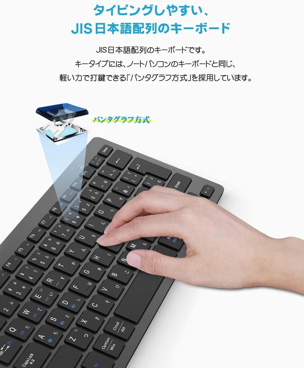 Ewin キーボード ワイヤレス bluetooth 小型 キーボード JIS基準 日本語配列 ios android Windows mac多システム対応 iphone ipad パソコン スマホ タブレット 三つデバイス自由に切替え 軽量 超薄型 日本語説明書 ブラック