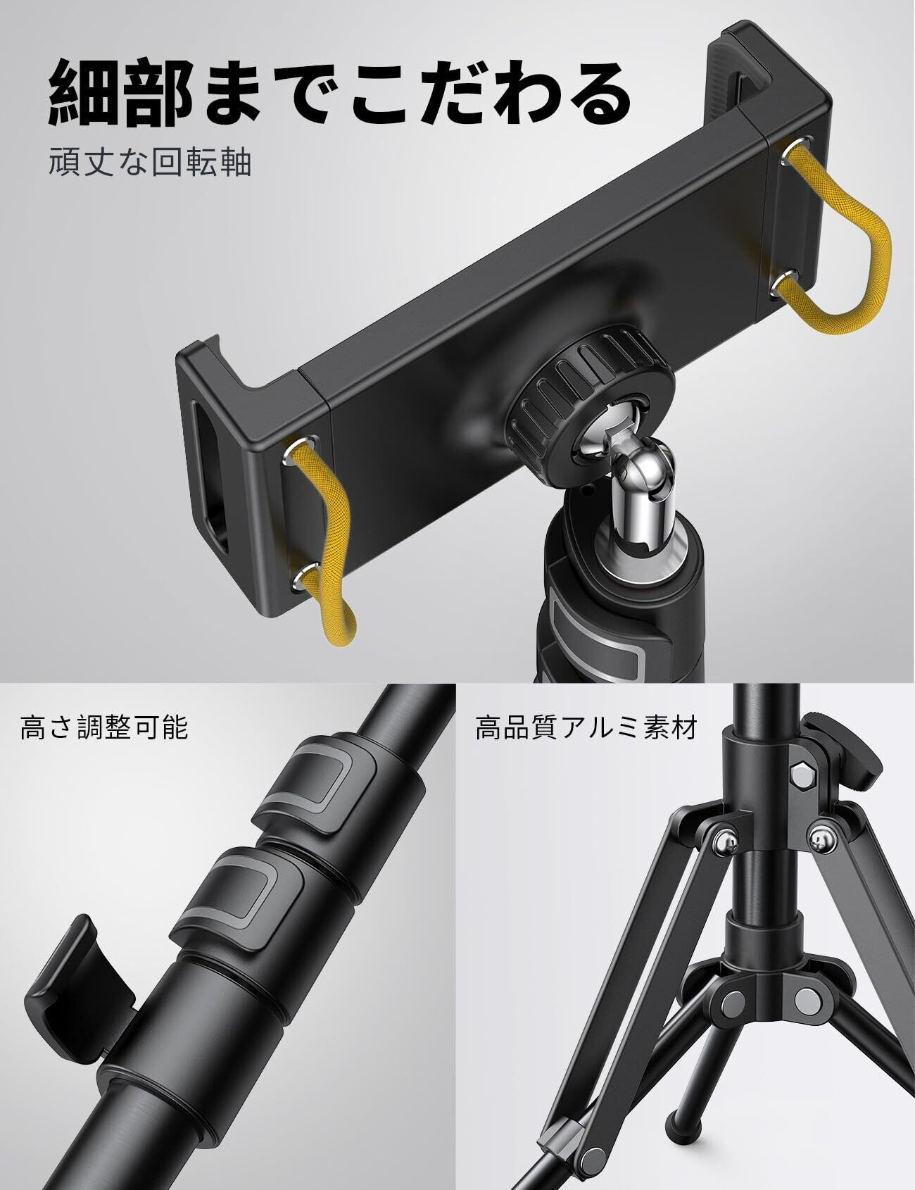 【高さ調整可能】高さは42.5cm-165㎝まで調整できます。録画、撮影、コンサート、講演、読書、オフィスミーティング、ZOOM会議など、様々なニーズに満足できます。