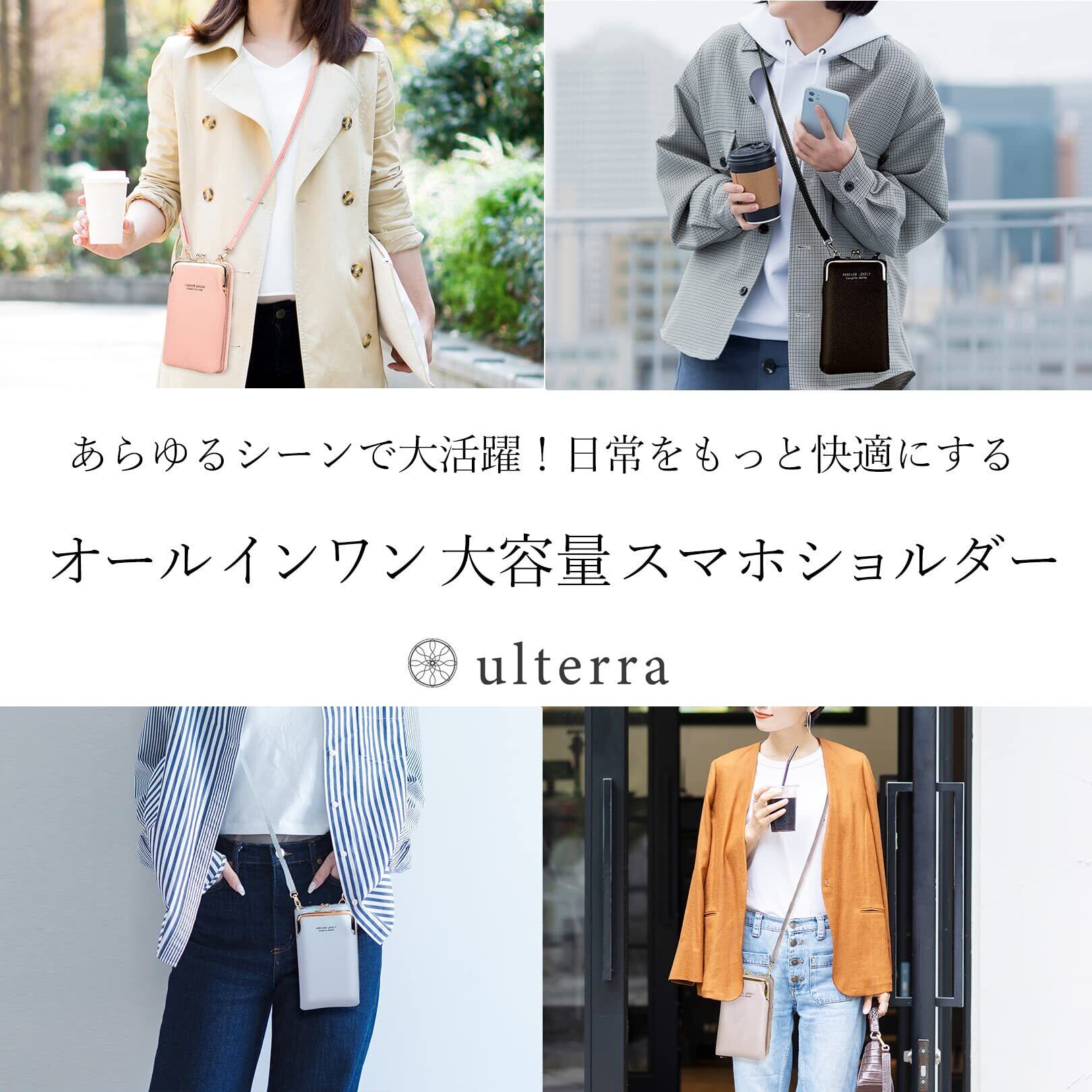 [ulterra] ショルダーバッグ スマホショルダー レディース 大容量 可愛い おしゃれ 斜めがけ ポシェット ポーチ 財布 携帯ポーチ スマホポーチ スマホ