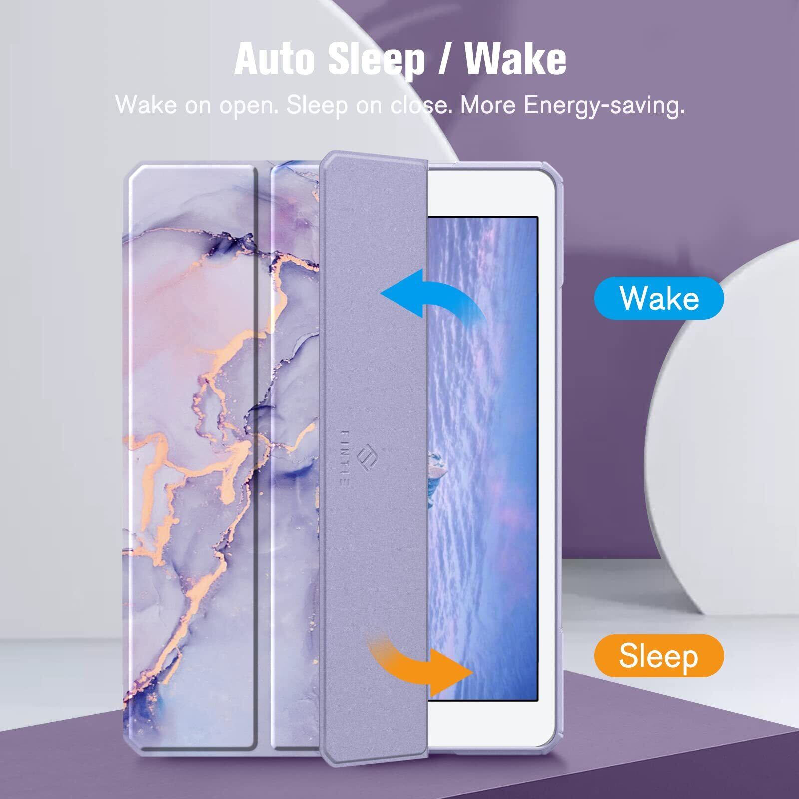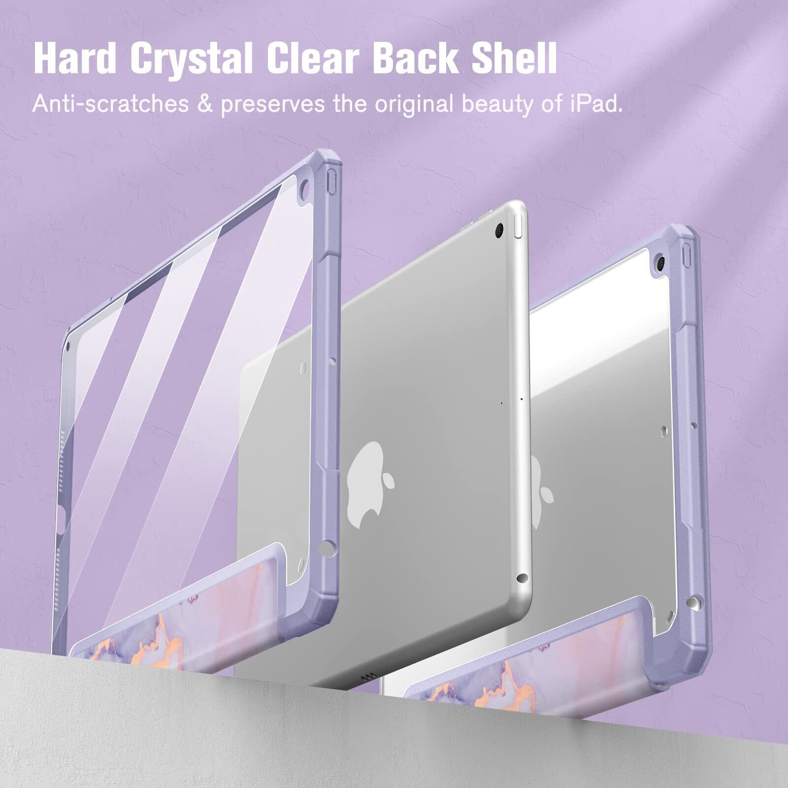 Fintie iPad 10.2 ケース iPad 第9 / 8 / 7世代 ケース 2021 2020 2019 透明バックカバー Apple Pencil 収納可能 三つ折スタンド スリープ機能 軽量 薄型 傷つけ防止 PU合成レザー TPU (モデル番号A2602、A2603、A2604、A2605)(柄 X マーブルパープル)