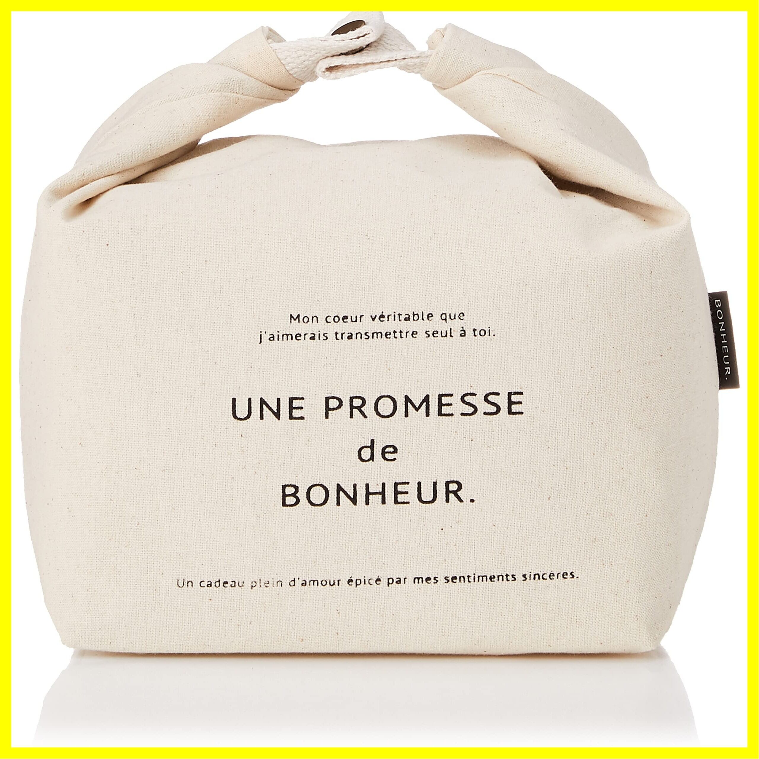 内側が撥水加工のバッグです。上の部分をくるっと巻いて留めることができます。軽い保冷効果があり、お弁当箱袋などのリユースにもおすすめ。 ゼリーのスタンドバッグが8個入るほど良い大きさとコロリとしたフォルム、帆布のザックリとした風合いが、シンプルなボヌールシリーズのデザインを引き立てる使いやすい布バッグです。