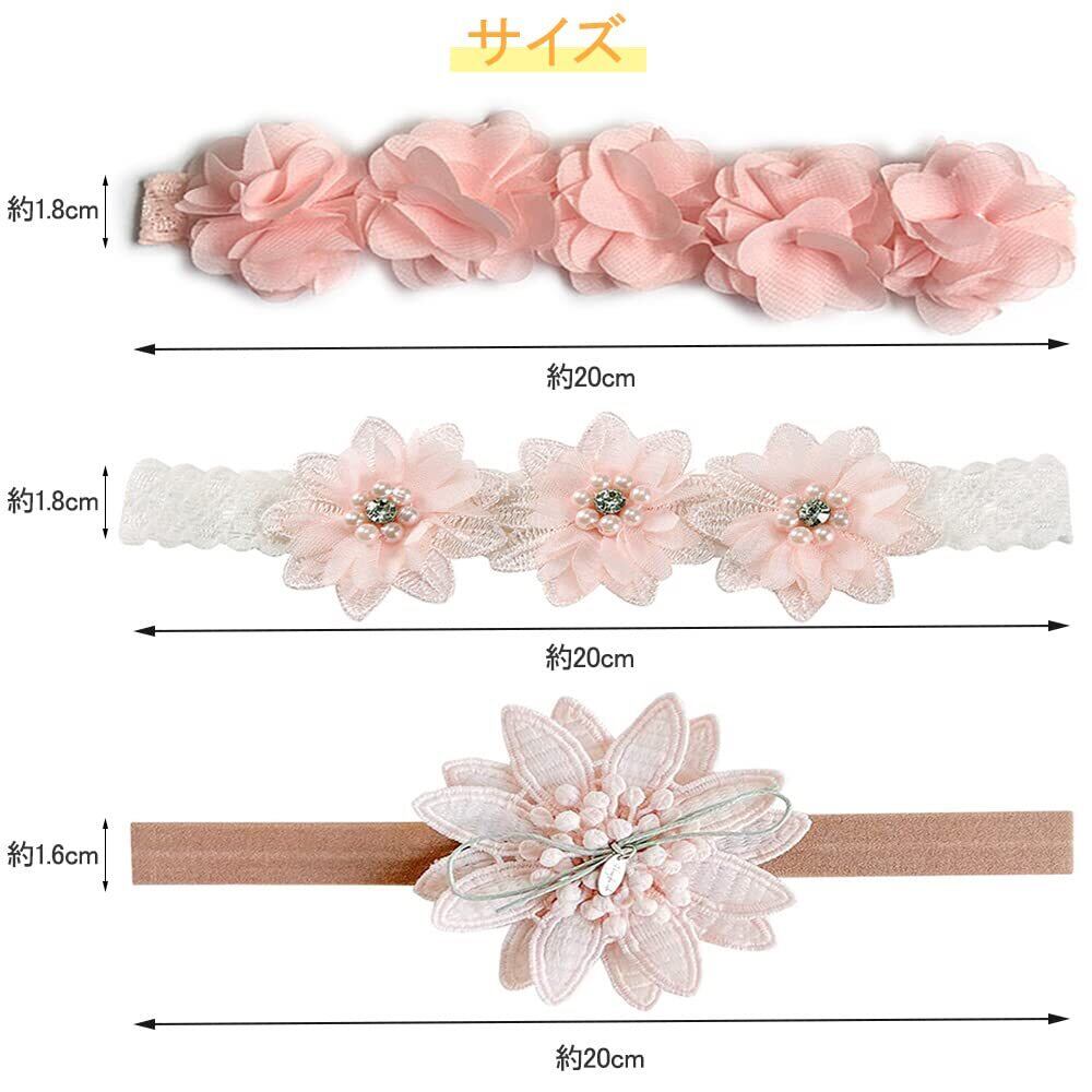 DFsucces ヘアバンド ベビー ゴ ヘアアクセサリー 髪飾り レースバンド ヘッドドレス 女の子 新生児 出産祝い 誕生日 記念撮影 お祝い 結婚式 3点セット (ピンク)