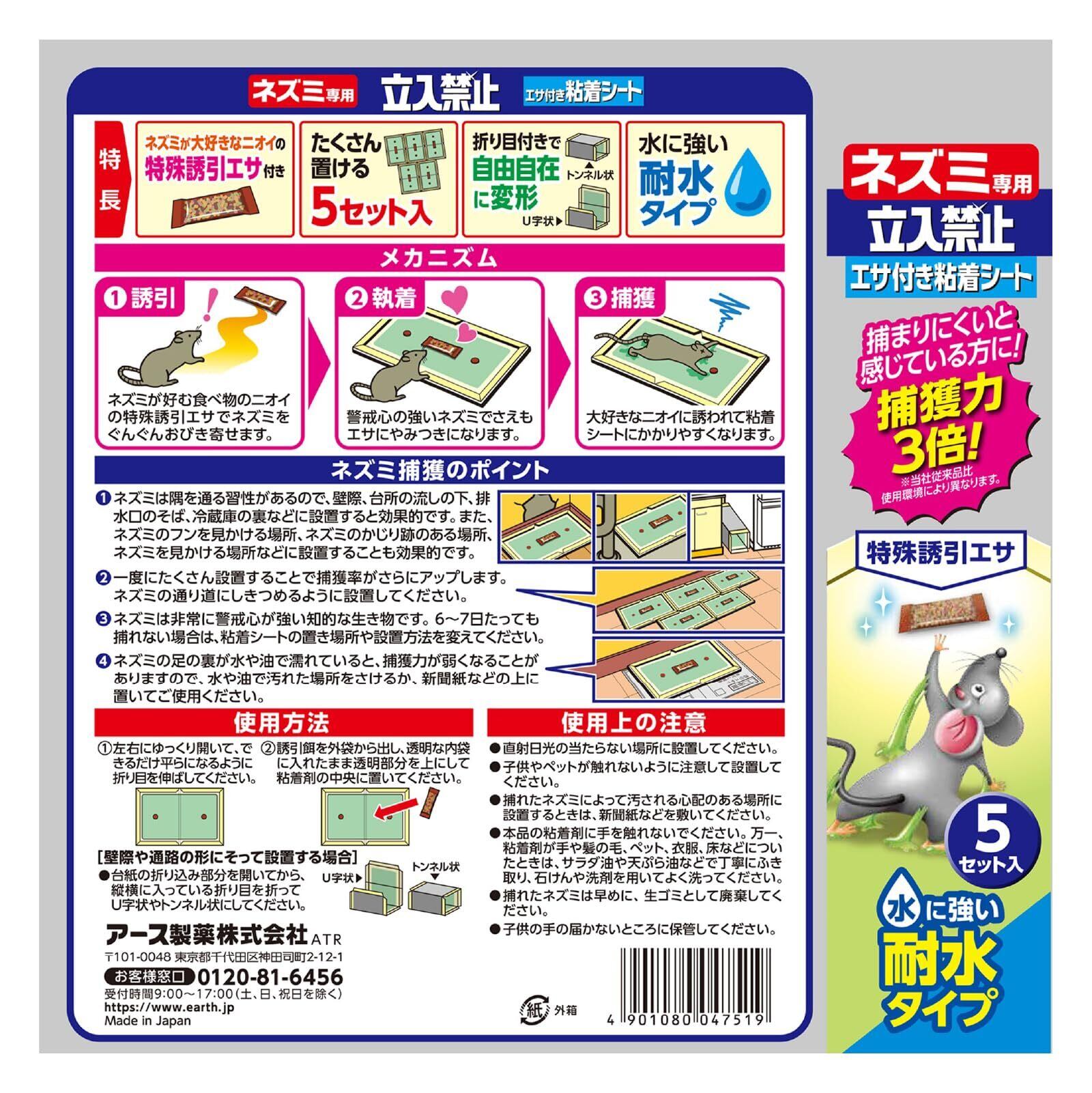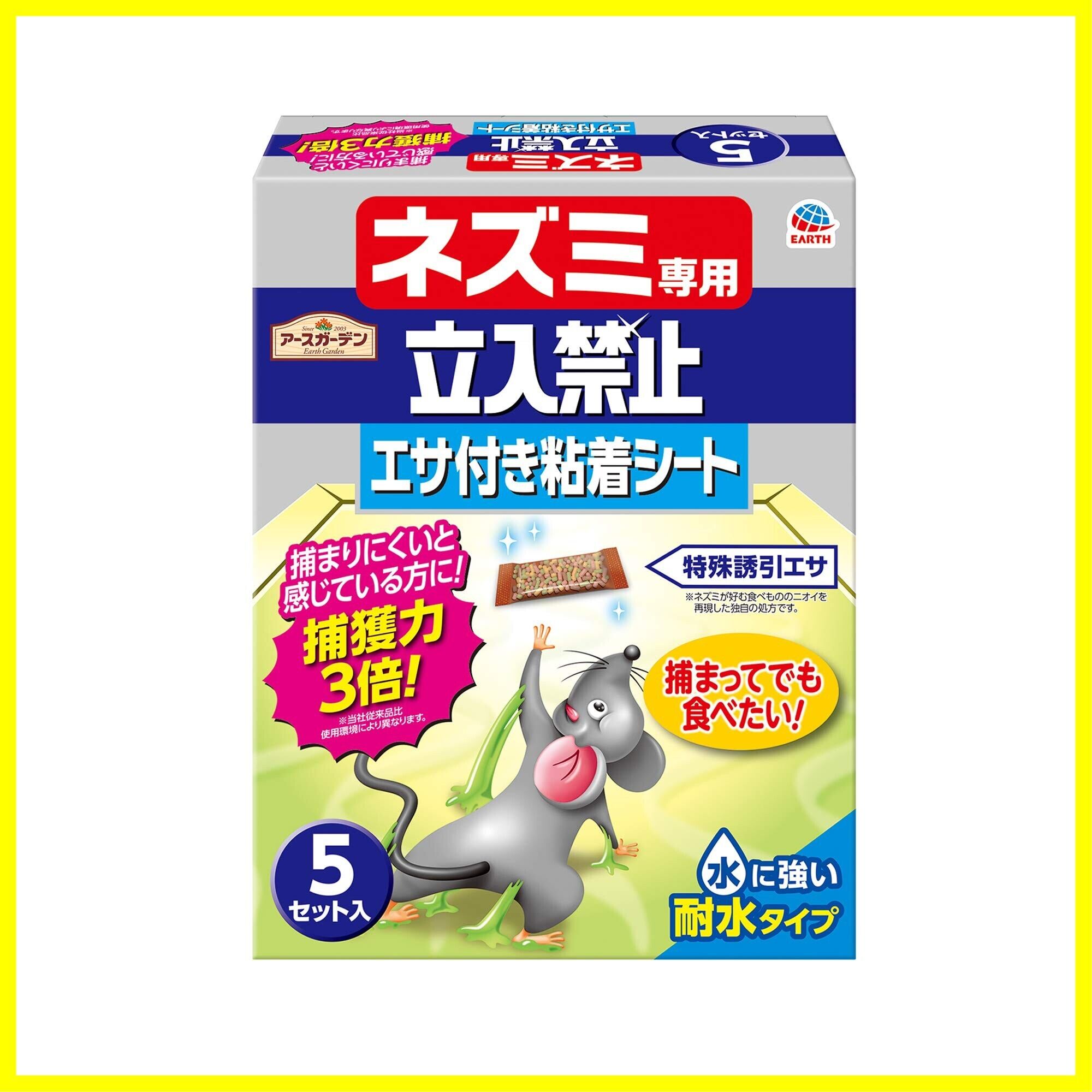 アースガーデン ネズミ専用立入禁止 エサ付き粘着シート 5セット入 園芸用 ネズミ捕り ネズミ取り ネズミ退治 鼠 駆除 害獣対策