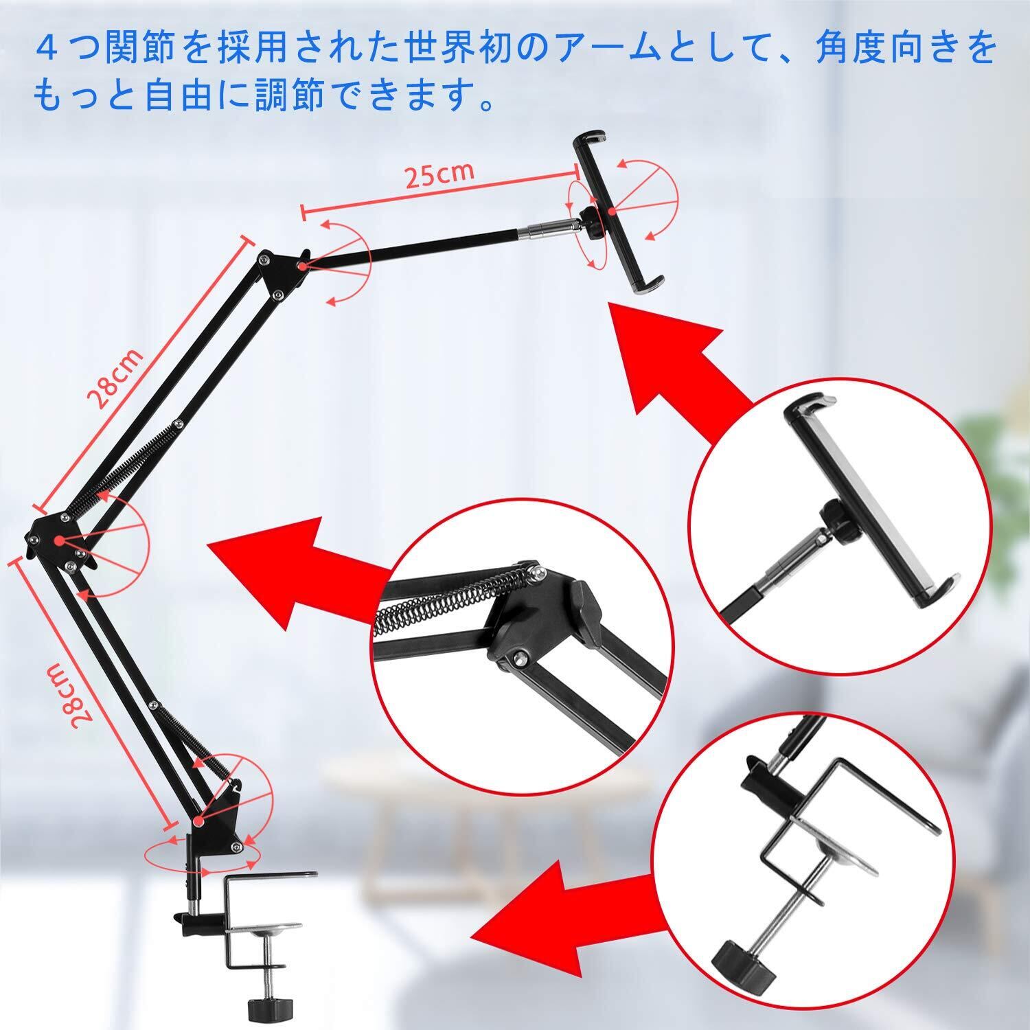 タブレット アーム 横/縱き 寝ながら スタンド or ホルダー ベッド、デスク、台所 4.5〜12.9インチ for iPad pro 、iPad 、Kindle、android surface、Fire HD8、N-Switch、iPhone XR、iPhone XS多機種対応 黒(ブラック)