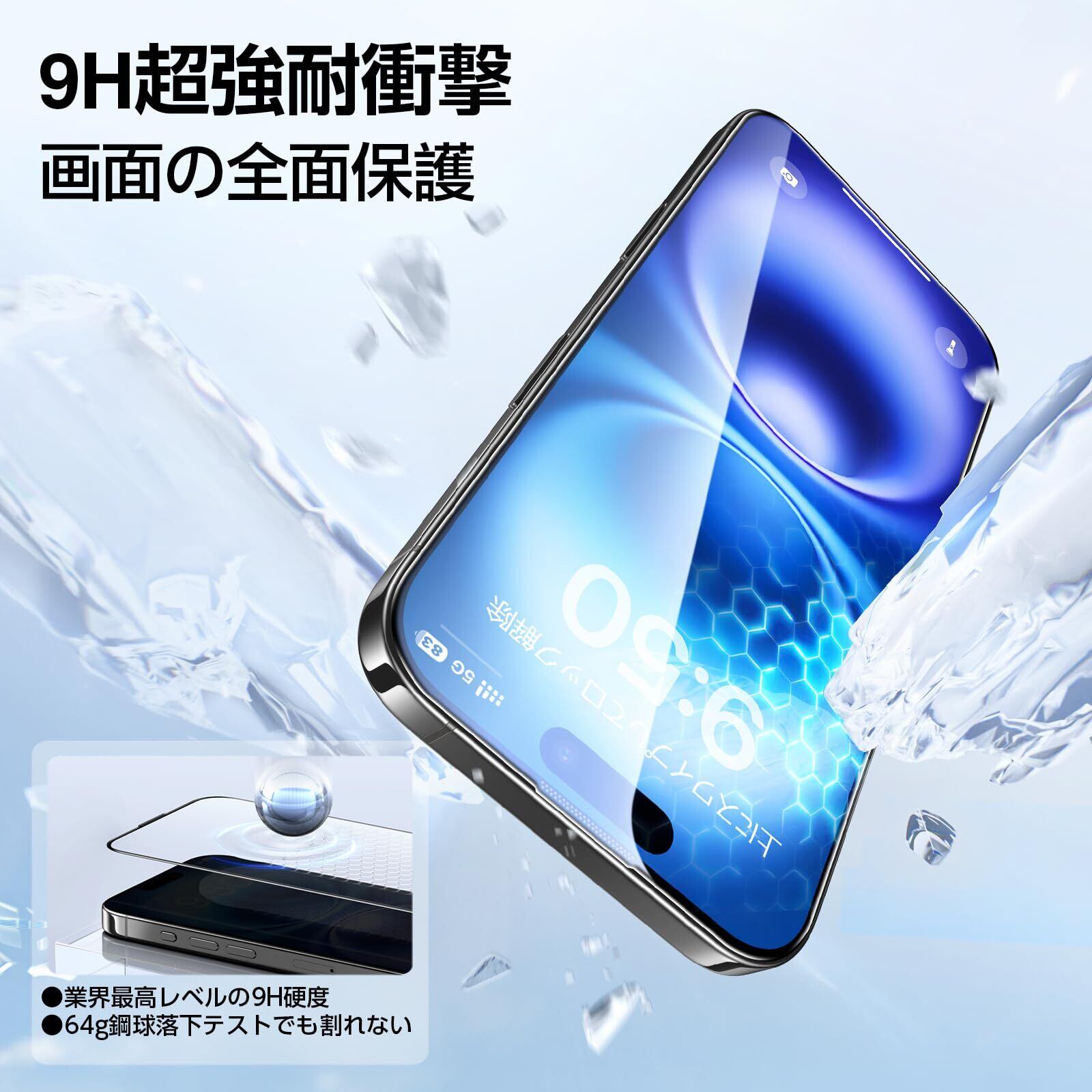 特徴 画期的な貼り付けボックス!SGS米軍MIL規格、全面保護、黒縁有り、耐衝撃性、高い透過率、滑らかな高感度タッチ、指紋防止、気泡レス、硬度9H越え、抜群な一体感