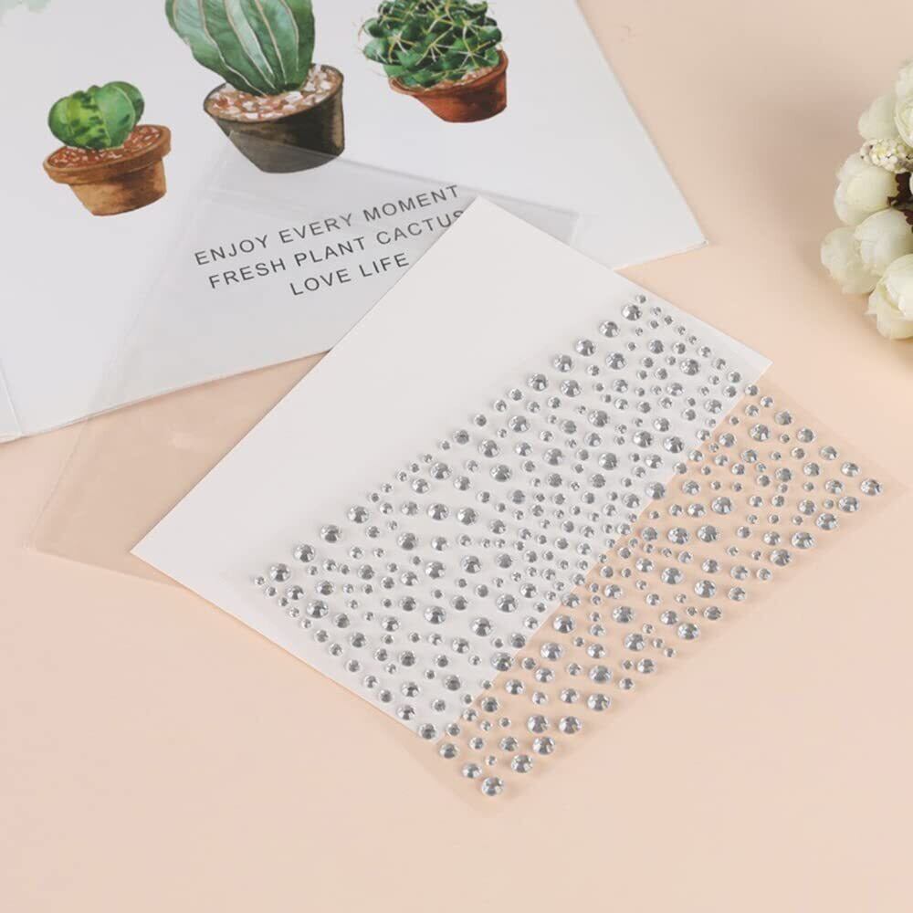 ラインストーンステッカー 4枚セット ジュエリーシール 白色 円形 自己粘着性 ダイヤモンド デコパーツ 携帯電話飾り用 DIY用 多種多様 手芸用品 ハンドメイド アクセサリーパーツ