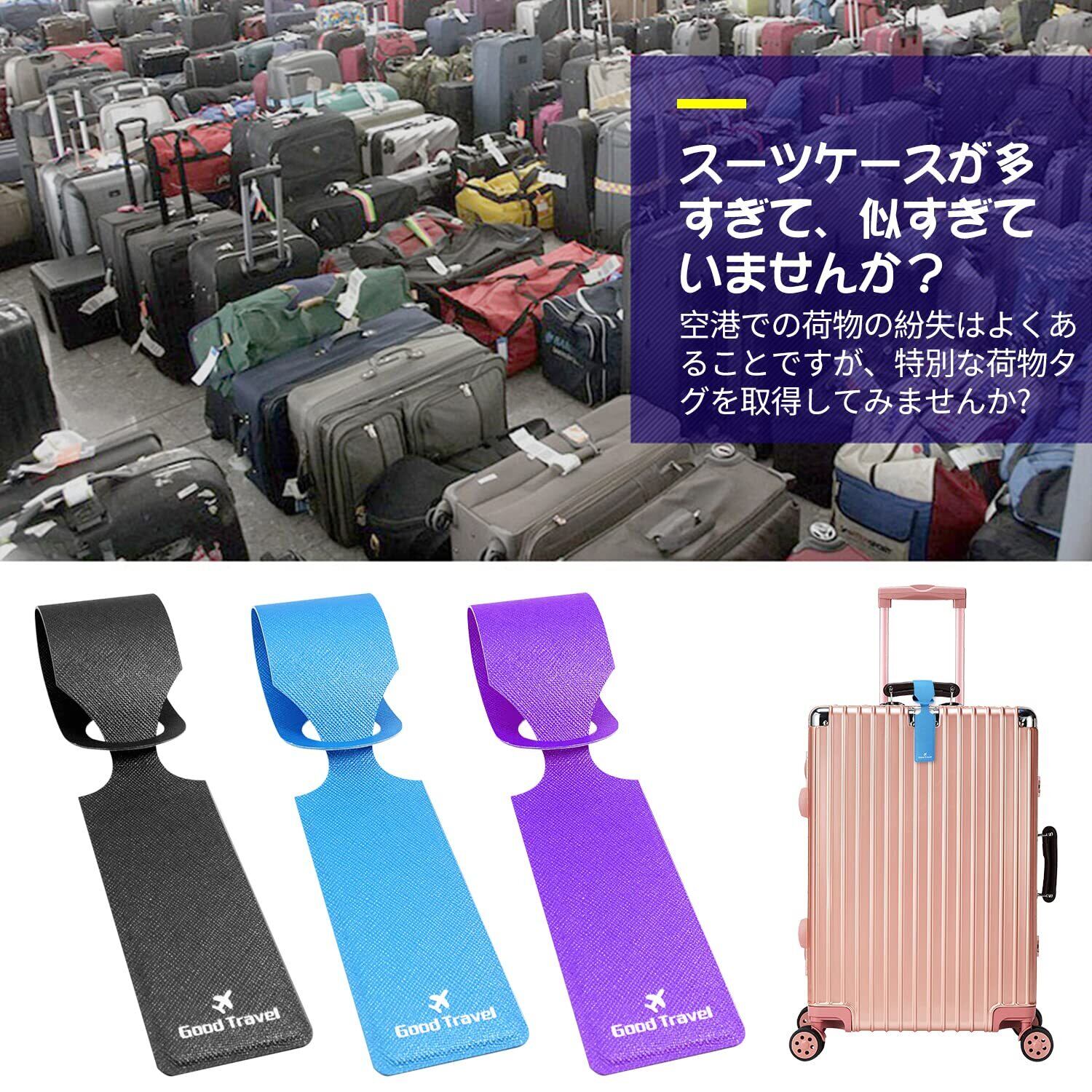 nalaina ネームタグ 荷物タグ 三枚入り 出張用タグ 番号札 旅行タグ 旅行手荷物 ラベル スーツケース 紛失防止 可愛い おしゃれ パープル 青 ブラック