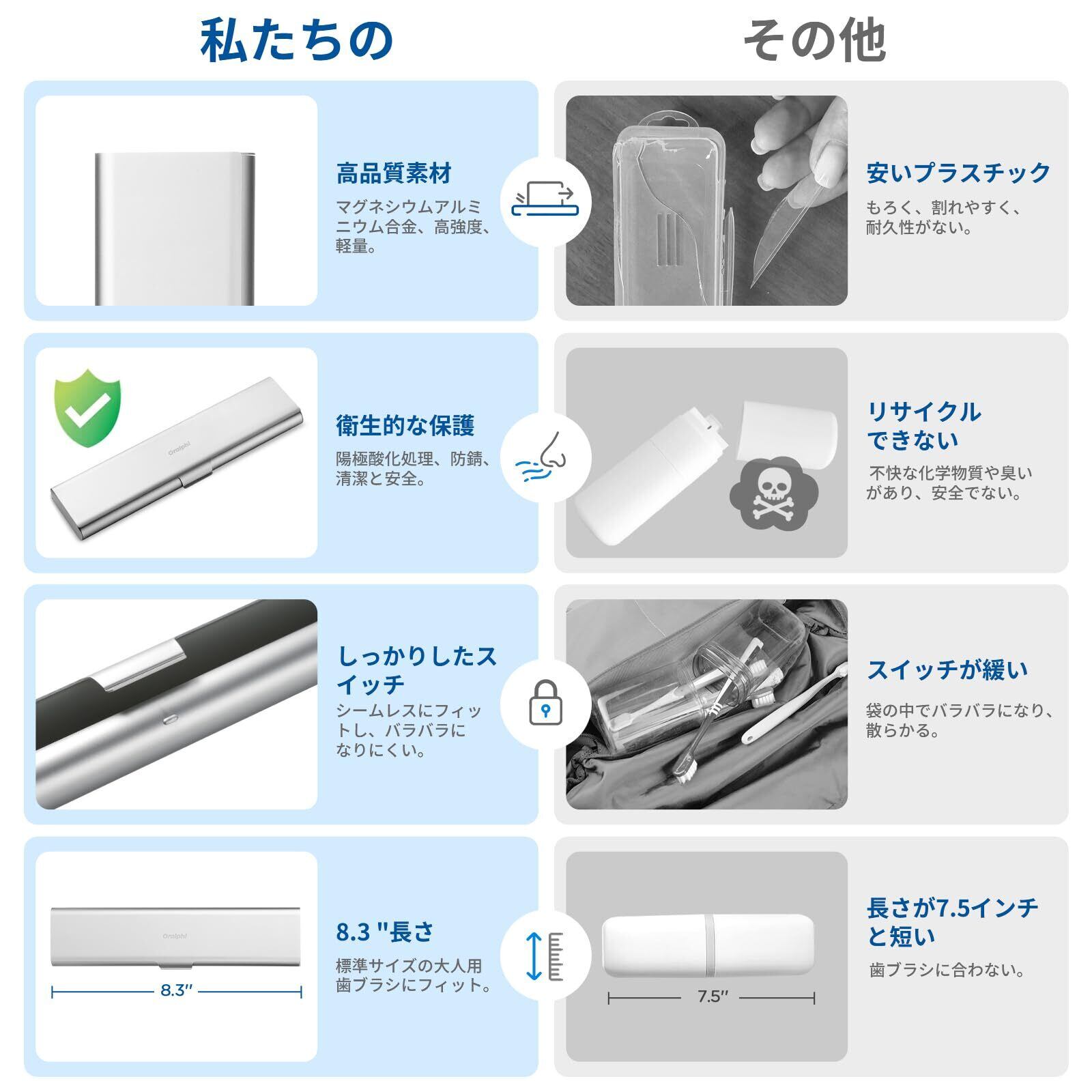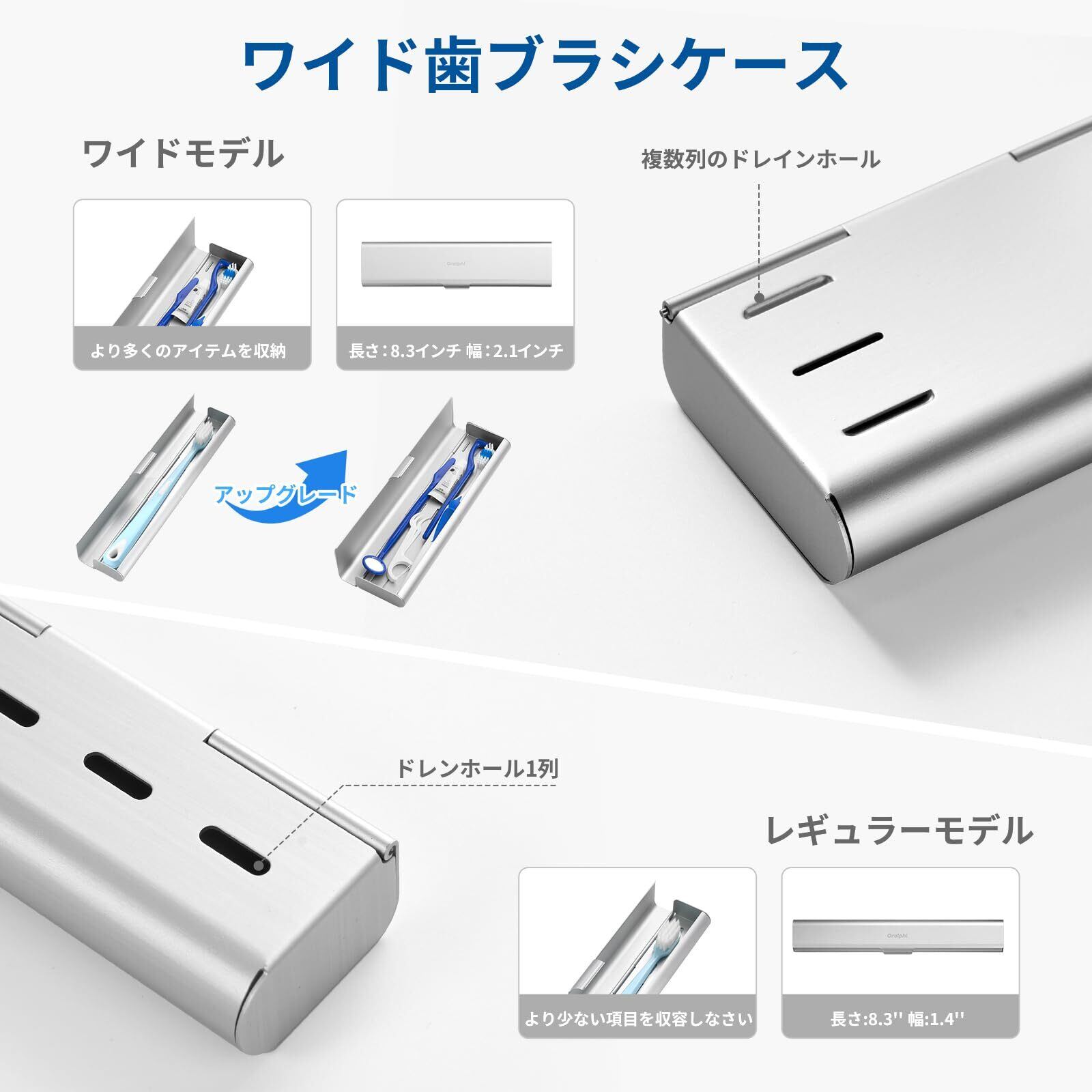 Oralphi 広幅設計 歯ブラシケース 携帯用 アルミニウム製 通気性 大容量 3本対応 歯磨きケース 歯ブラシ入れ 歯ブラシ収納 旅行用 多機能 軽量 持ち運び 耐久性 子供 大人対応