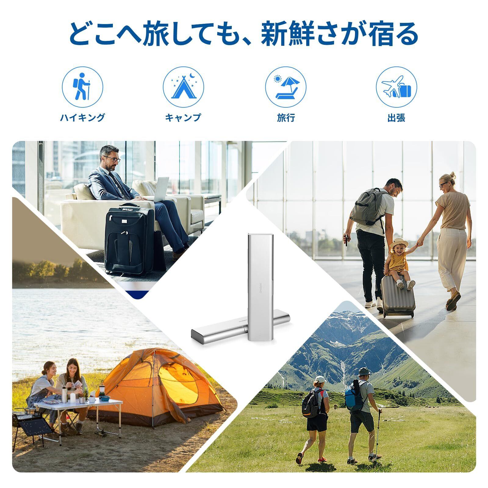 旅行・アウトドアに最適なコンパクト設計: 旅行者を念頭に置いて設計された持ち運び歯ブラシホルダーは、21cm × 5.3cm × 1.8cmのサイズで、ほとんどの手動歯ブラシにフィットし、バックパック・トートバッグ・スーツケースの隙間にもすっきり収納(電動歯ブラシ非対応)。大人用歯ブラシは最大3本まで収納可能です