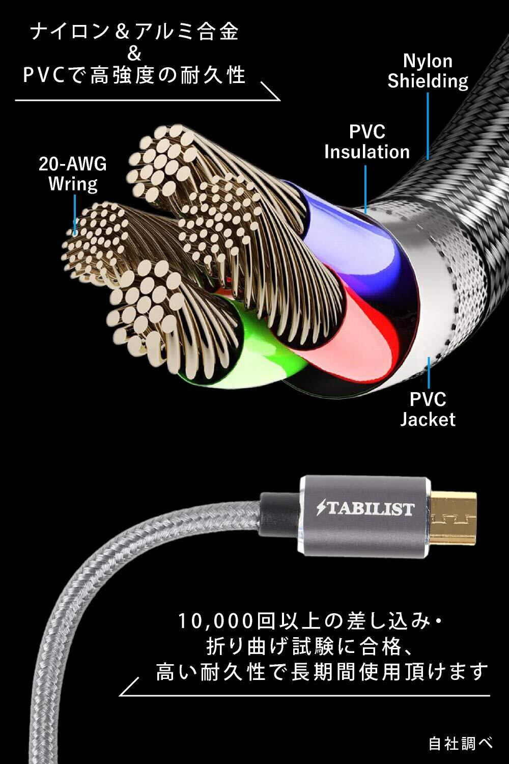 高い強度を誇るナイロン+アルミ合金+PVC製ケーブル:10,000回以上の折り曲げ試験に合格、高い耐久性で長期間使用頂けます micro USB タイプb type-b じゅうでん コード 充電器 steam