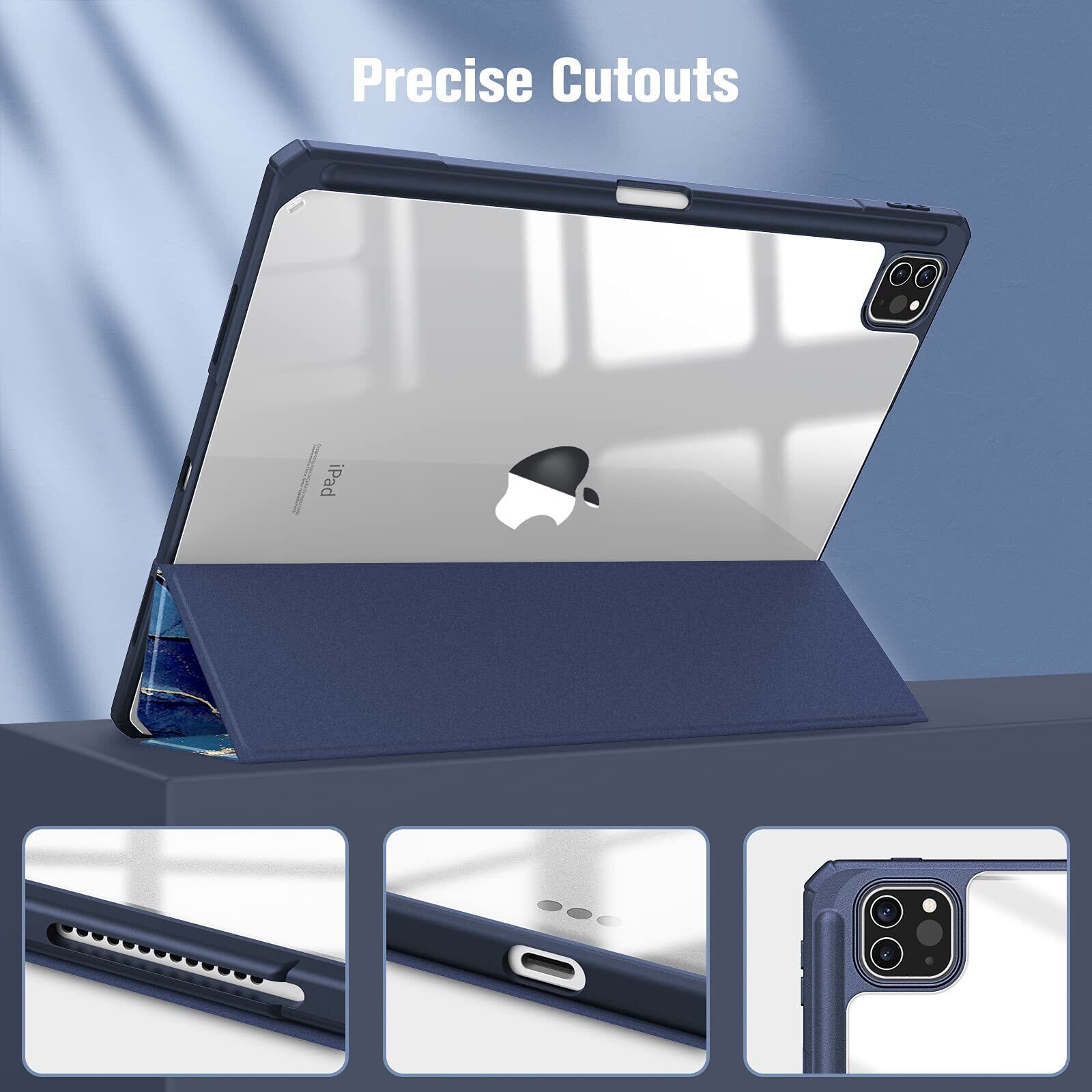Fintie iPad Pro 12.9 ケース 2022/ 2021/ 2020/2018 12.9インチ 透明バックカバー Apple Pencil 収納可能 Apple Pencil 2 ワイヤレス充電対応 三つ折スタンド スリープ機能 軽量 薄型 傷つけ防止 PU合成レザー TPU (モデル番号A2378、A2461、A2379、A2462)(柄 X マーブルブルー)