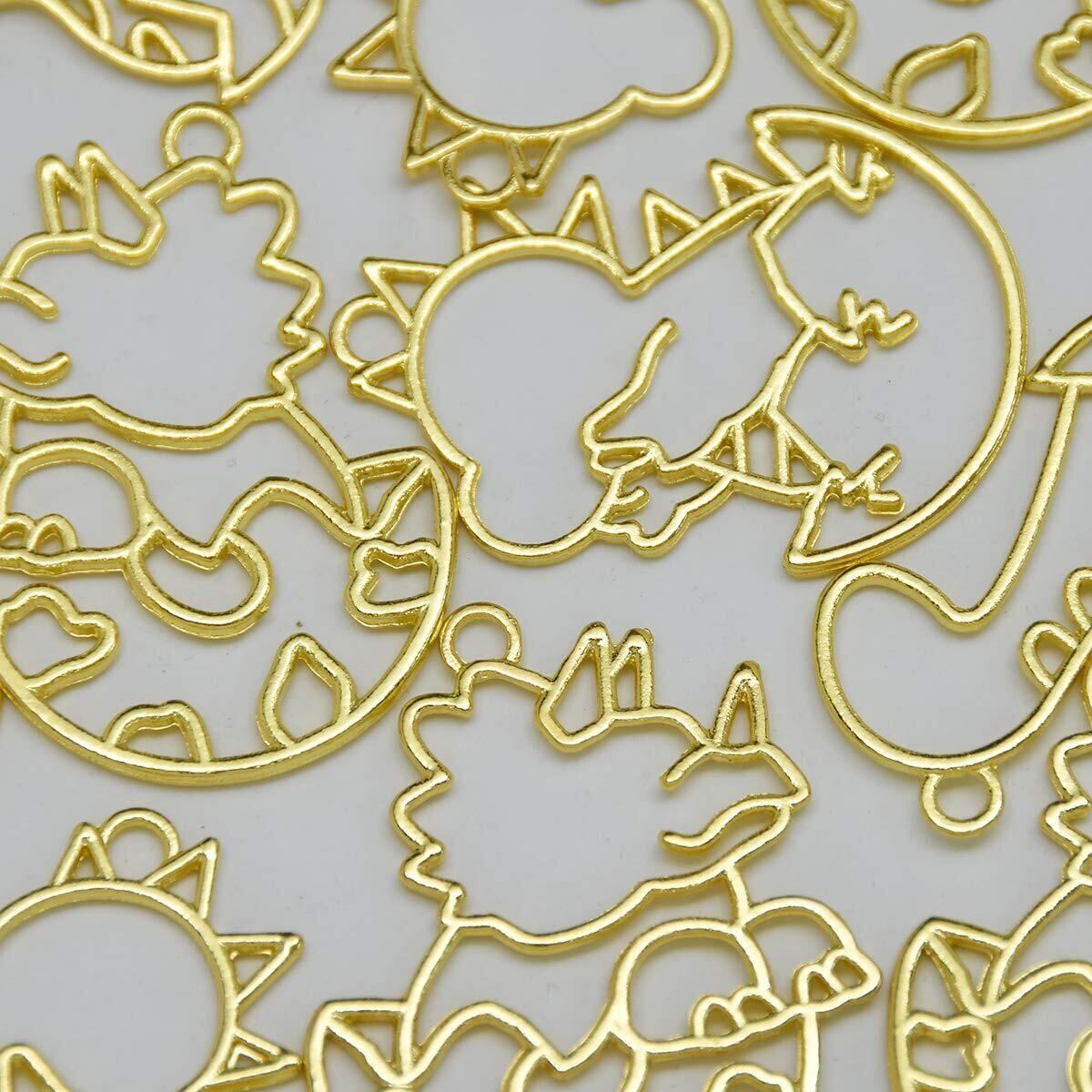 イヤリングパーツ MUNCVY DIY レジン枠 空枠 フレーム パーツ ゴールド セット uvクラフト 大量 カン付き 恐竜シリーズ トリケラトプス ブラキオサウルス カワイイ セッティング アクセサリーパーツ から枠